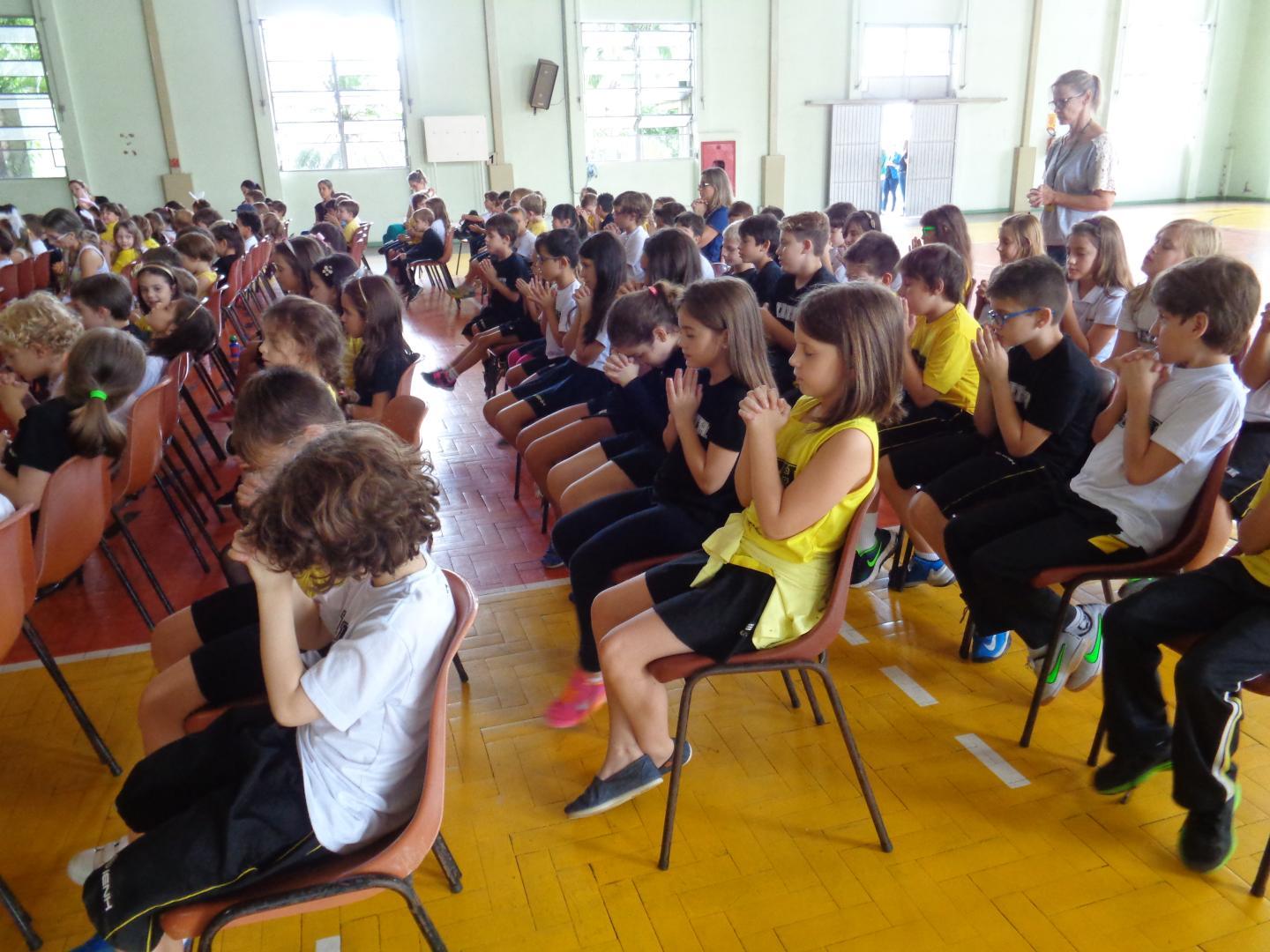 Organizados no Ginásio da Unidade, os momentos foram ministrados pela Professora de Ensino Religioso – Soraya Eberle.