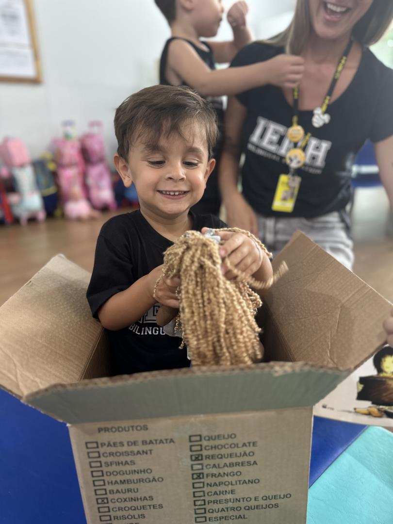No dia seguinte, a experiência continuou de forma ainda mais interativa. Uma grande caixa de papelão, semelhante à utilizada pela personagem na história, foi levada para a turma. Dentro dela estava uma boneca representando Jéssica, que “apareceu” para convidar os colegas a brincar de se esconder, assim como acontece no final do livro. “As crianças participaram com entusiasmo e aproveitaram o momento de brincadeira e imaginação”, acrescenta a professora Joana Machado.