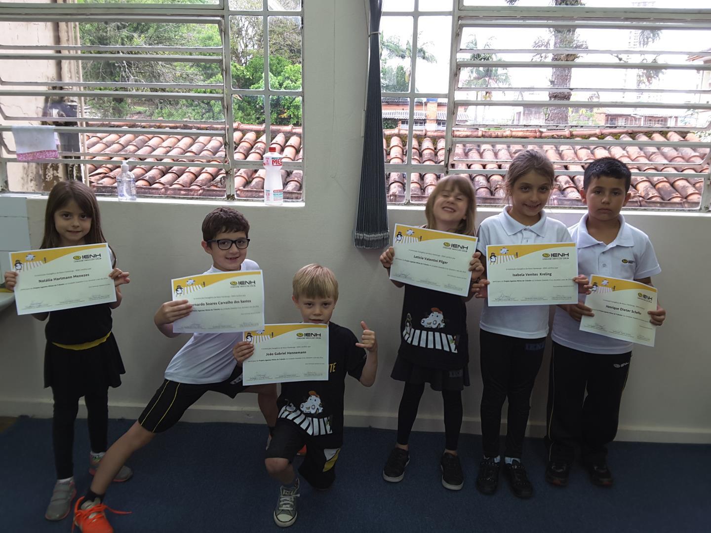 Na confraternização de encerramento das atividades deste ano, os alunos receberam certificados de participação.