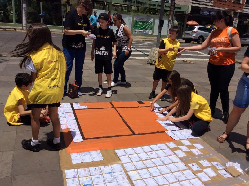 No dia 05 de dezembro, os Agentes Mirins da IENH – Unidade Oswaldo Cruz realizaram o fechamento do projeto “Multiplique Gentilezas no Trânsito”. No Calçadão Osvaldo Cruz, os estudantes criaram um veículo, esculpido em mosaicos, os quais retratavam as gentilezas que podem ser realizadas como motoristas, acompanhantes ou pedestres, no trânsito. A ação contou com a parceria do CFC Valderez.