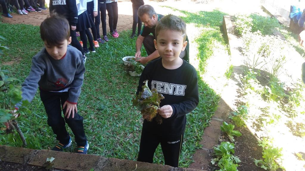 Na segunda-feira, dia 23 de outubro, os alunos dos 2ºs anos do Ensino Fundamental Bilíngue da IENH – Unidade Pindorama realizaram a colheita das alfaces e rúculas que foram plantadas em conjunto com os 4ºs anos na Horta Escolar.