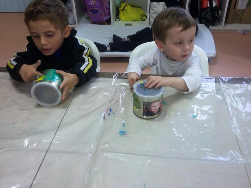 Na visita, Cristina trouxe latas com a foto dos alunos e junto com eles confeccionou um tambor. Dentro das latas continham tampinhas, pois o tambor também pode ser utilizado como chocalho. Junto com os alunos, a mãe do Lucas pintou as latas com cola colorida. “Também brincamos e cantamos”, conta a Professora Lúcia Juliana Persch Cardoso.