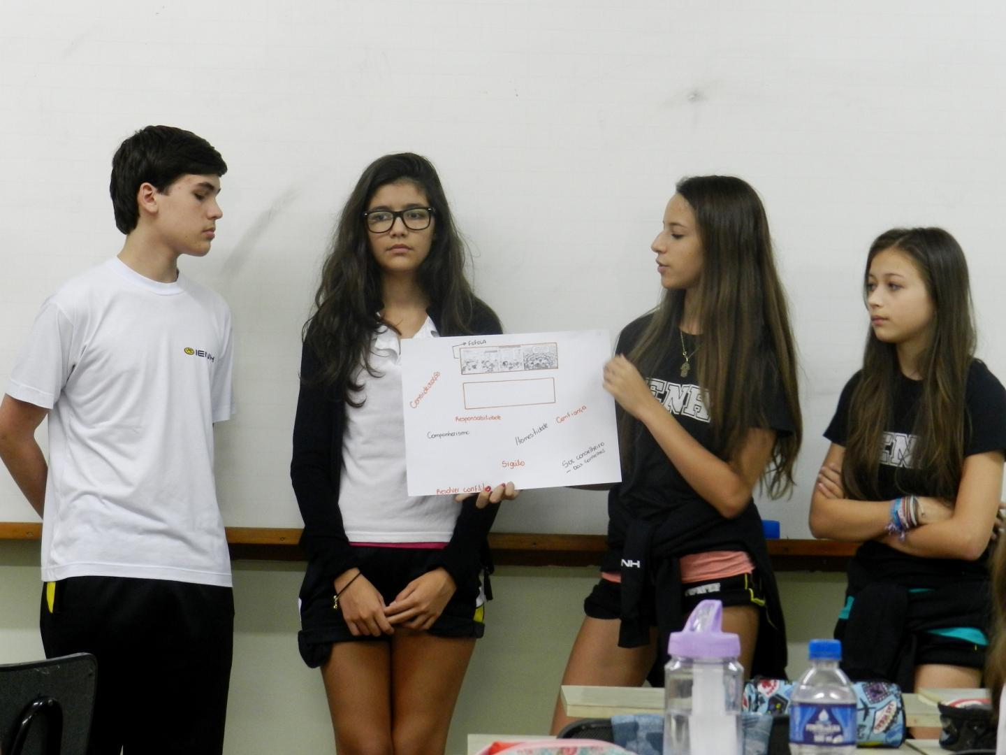 Em grupos, os alunos analisaram ilustrações, determinando características para as imagens que mostravam líderes. Cada equipe apresentou sua análise para a turma e identificou os líderes autoritários, emergentes ou situacionais, indecisos e democráticos. A Orientadora Educacional do Ensino Fundamental – Marga Rodrigues comentou sobre os quatro tipos de líderes.