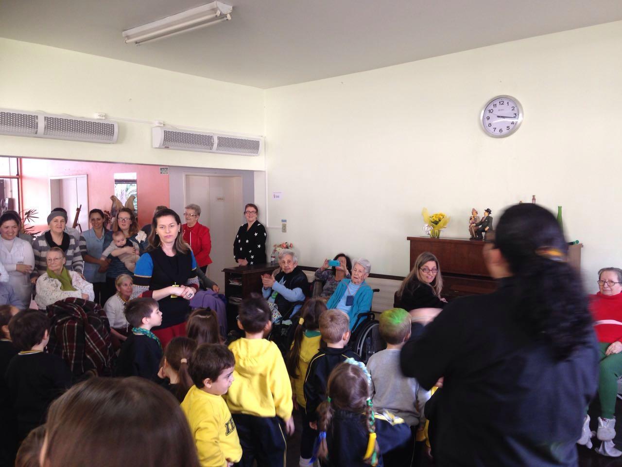 Acompanhados das Professoras Denise Serini Kuhsler, Neila Ritzel, Claudete Weber, Liliane Bohlke, Raíssa Silveira, Vitória Ornelas e Michele Batista, os alunos saíram de ônibus com destino ao Lar. Ao chegarem ao local, os estudantes cumprimentaram os idosos, conversaram com eles e também cantaram músicas alegres. Ao final, as turmas presentearam os avós com uma lamparina, produzida pelas crianças com materiais como vidro de pepino, arame, tinta e vela.
