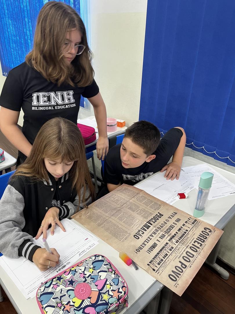 Para a pesquisa, os alunos tiveram acesso a documentos oficiais antigos e jornais relacionados ao período do Brasil Império e República. “O registro dos conhecimentos foi realizado em inglês, assim como parte das interações entre os alunos, vários novos vocabulários foram consolidados no contato com as evidências históricas”, completa o professor.