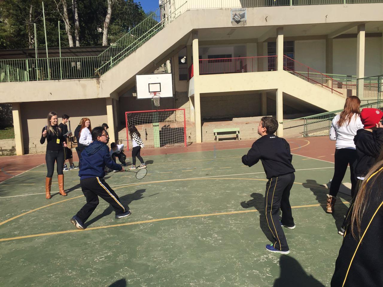 O primeiro encontro entre os grupos oportunizou que pudessem se conhecer. Os estudantes do Ensino Médio fizeram uma apresentação sobre esportes olímpicos em que o Brasil participará pela primeira vez nessa olimpíada. Posterior à apresentação, organizaram um quiz com os colegas e algumas atividades práticas, em forma de gincana.