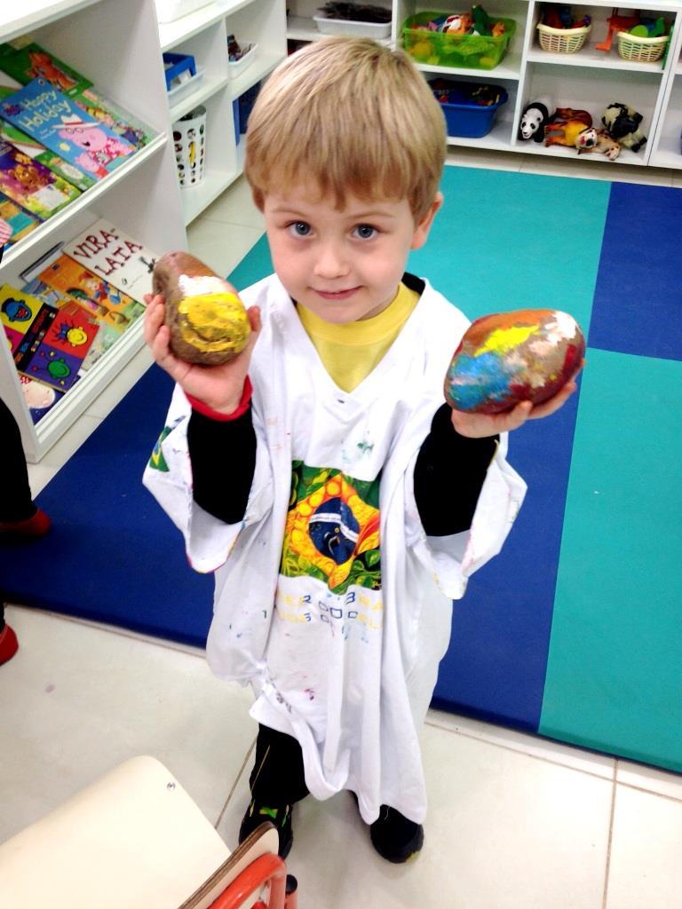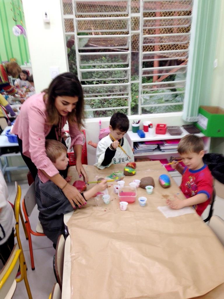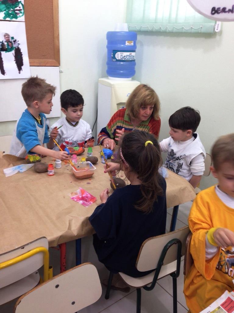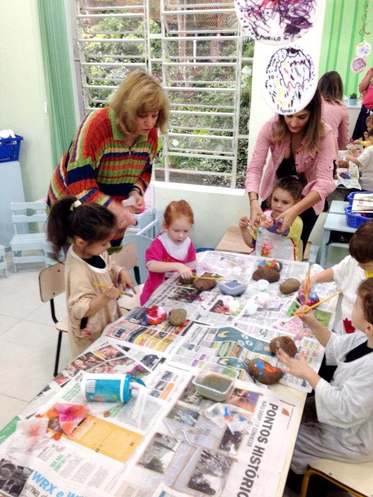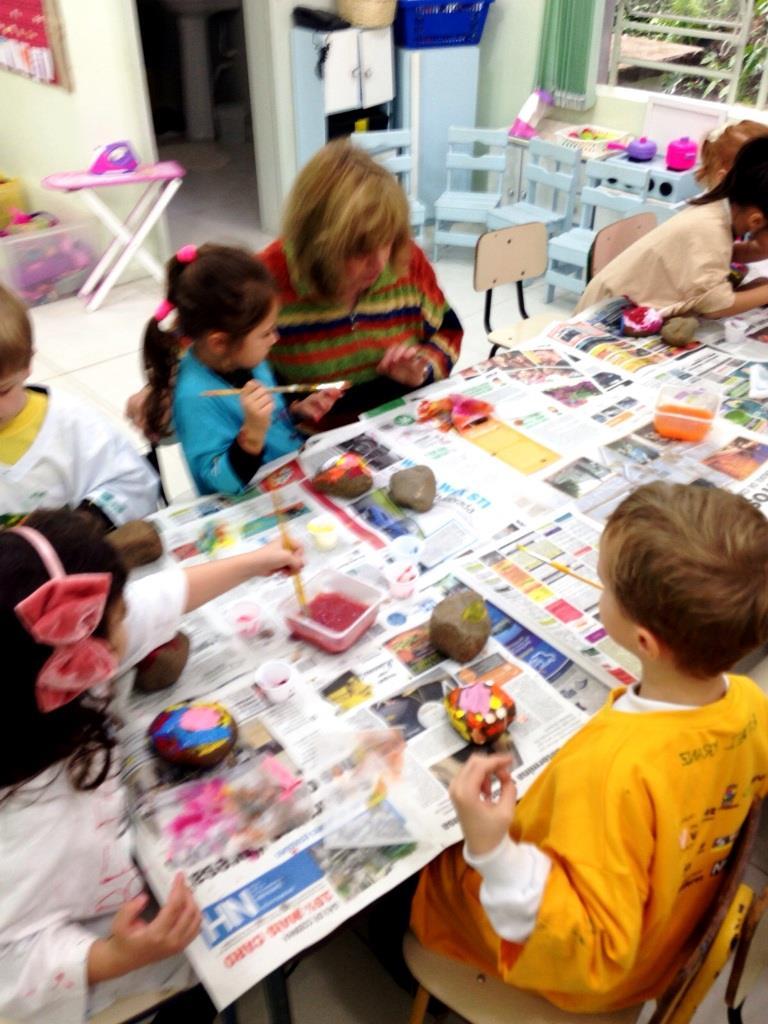 Semanas após a visita, a artista veio até a escola para, em conjunto com as turmas, colocar "a mão na massa", comenta Denise. Lory mostrou o trabalho de pintura em pedras e desafiou os grupos a explorarem as cores nas novas pedras. Todos os estudantes puderam produzir suas próprias obras de arte através da pintura nas pedras.