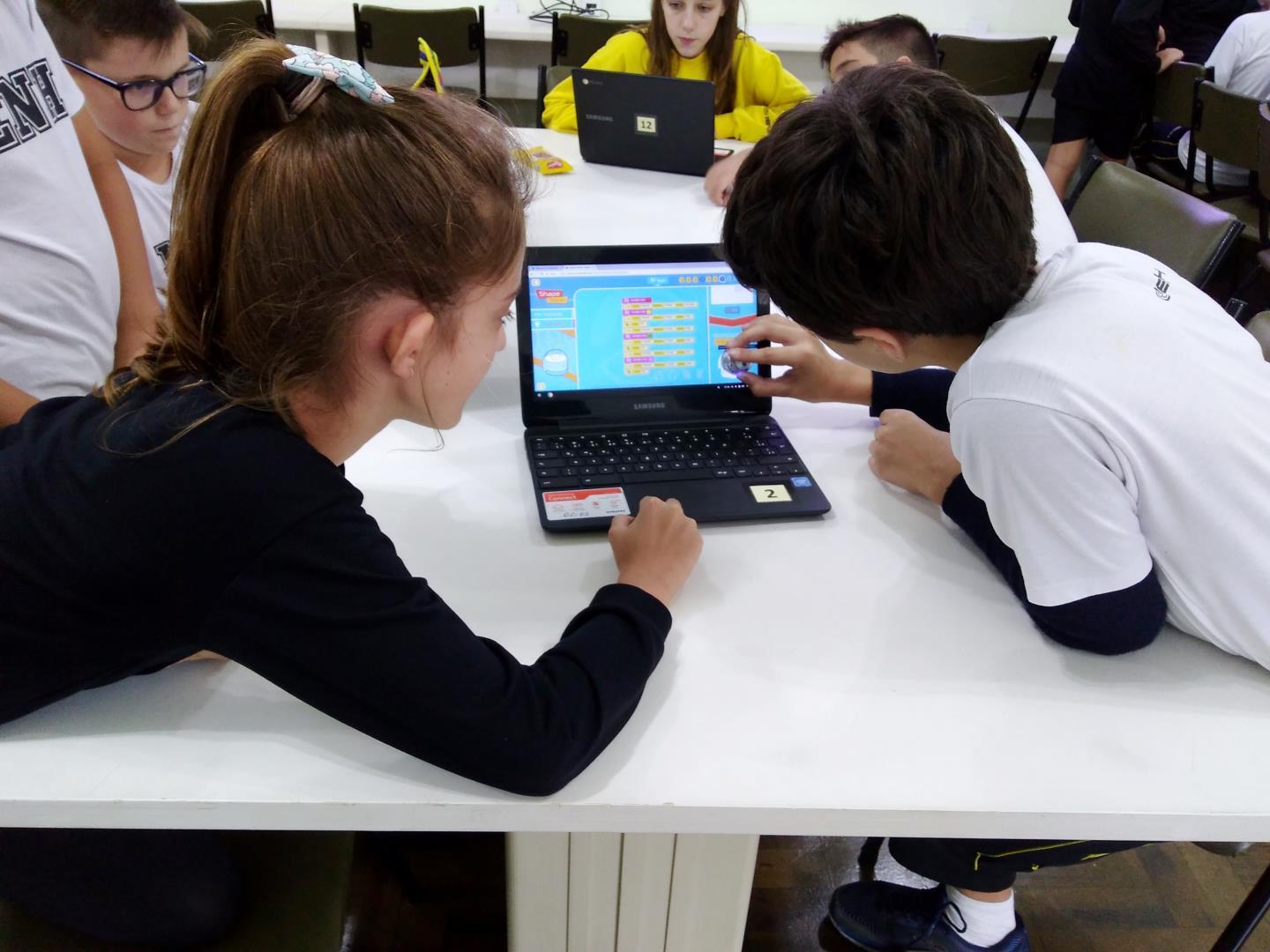 Durante as aulas de Programming, os alunos dos 6ºs anos do Ensino Fundamental Bilíngue da IENH – Unidade Oswaldo Cruz resolvem desafios lúdicos através do uso de programação em blocos na plataforma virtual Code.org. Com o uso do Ozobot EVO, os alunos utilizam os conhecimentos adquiridos no Code.org para programar instruções que são seguidas pelo robô de maneira a aplicar os conceitos de forma concreta.