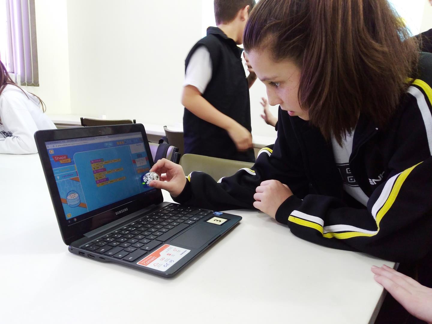 Na atividade, os estudantes aprenderam a operar o Ozobot, entendendo a comunicação do robô através das luzes que emite. Também concretizaram os conceitos de lógica computacional desenvolvidos durante as aulas de Programming, configurando o Ozobot EVO para realização de tarefas envolvendo movimento e efeitos luminosos. De acordo com o Professor Carlos, após essa aula introdutória, pretende-se explorar as funcionalidades do Ozobot em projetos interdisciplinares.