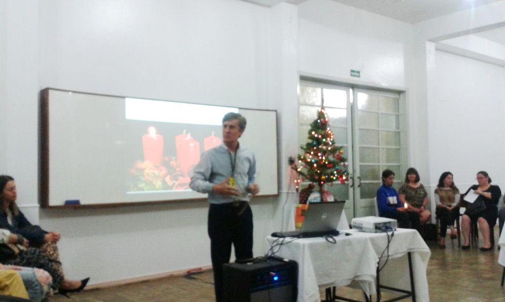 Foi no Espaço Multiuso que os Pais Representantes de turmas e a Diretoria da APP se reuniram no momento coordenado pelo Casal Presidente da Associação - Nicolau e Daniela Blauth. Após a saudação inicial realizada pelo casal, o Teólogo e Professor Marcelo Ackermann ministrou a meditação. Com a organização da Professora Joana Haar, apresentações musicais aconteceram. A Coordenadora da Unidade - Déborah Cassel e o Diretor Geral da IENH - Seno Leonhardt realizaram um momento de fala, seguido da fala do casal Blauth e da sua parceria com o Grêmio Estudantil Castro Alves - GECA. O Natal Solidário da IENH, que ocorrerá na próxima sexta-feira, dia 04 de dezembro, também foi um dos temas abordados na reunião. Os agradecimentos com votos de um abençoado Natal e excelente 2016 foram seguidos do convite para o coquetel e entrega de mimos.