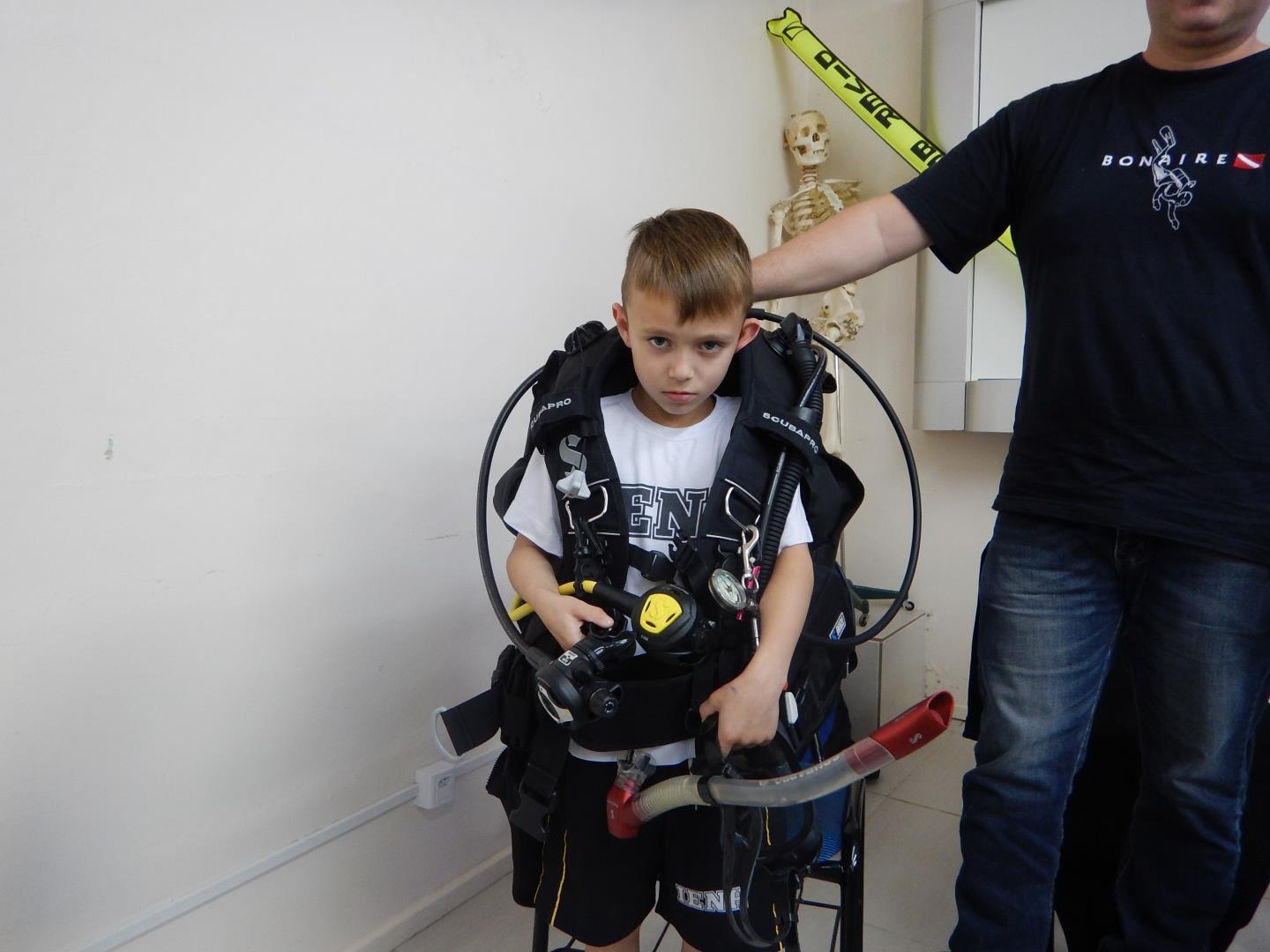 Um dos assuntos escolhidos pela turma do 1º ano E do Ensino fundamental da IENH – Unidade Oswaldo Cruz para aprender e aprofundar durante esse segundo semestre foi descobrir mais informações sobre o fundo do mar. Desta forma, no dia 23 de novembro, os alunos receberam a visita do instrutor profissional de mergulho Rodrigo Menezes, que é pai da aluna Natália H. Menezes.