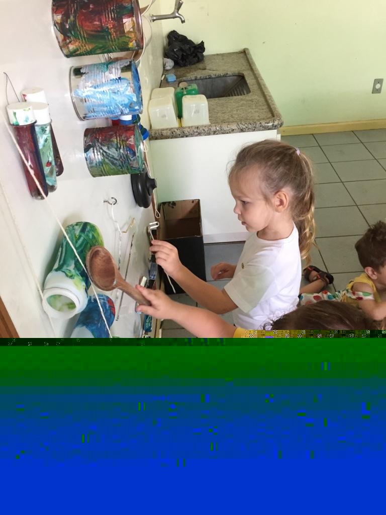 Em aula, através das descobertas dos sons, a turma em conjunto com a Professora Joana Schneider Machado escolheu confeccionar o trompete e o tambor, que agora fazem parte do "Cantinho da Música". Seguindo a atividade, o grupo também decidiu elaborar um painel sonoro, cujo objetivo foi explorar sons do ambiente e ampliar a percepção sonora, além de compartilhar a criação da turma com os demais alunos da escola. "Para a confecção do painel se tornar possível, contamos com o auxílio das famílias. As mesmas trouxeram alguns materiais que fizeram parte do nosso painel, como: colher de pau, colher de plástico, tampinhas, arames, tampa de panela, canos de diferentes tamanhos, potes de amaciante, dentre outros", conta a Professora Joana. Com o auxílio do André, funcionário da escola, o painel foi elaborado e finalizado. Animados, os estudantes apresentaram grande satisfação em poder utilizar a própria criação, podendo perceber as diversas possibilidades de produção de sons.