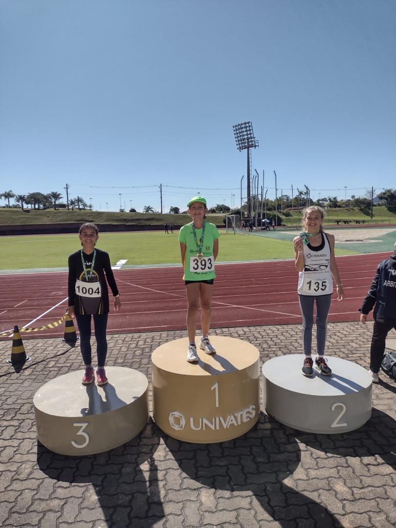 Laura Vendramin Fratta – 1º lugar salto em distância, 1º lugar 75 metros, 2º lugar 250 metros