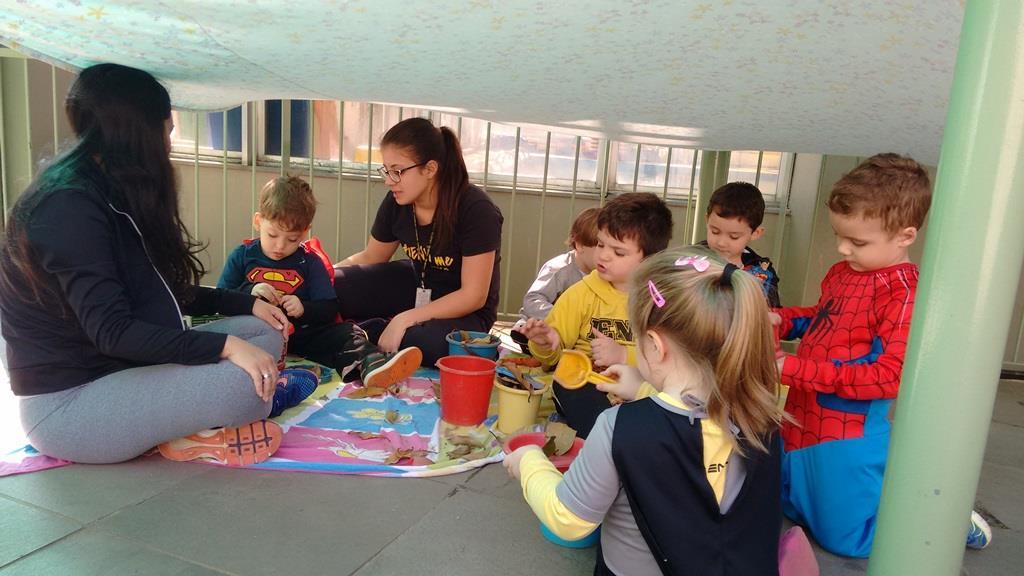 Na segunda-feira, trabalhando com o faz de conta, os alunos tiveram a oportunidade de brincar de dança das cadeiras, desenvolver os cinco sentidos, assistir ao teatro de sombras, construir a cabaninha no pátio, além de vestir fantasias. Por meio das artes dramáticas, os alunos aprenderam a se relacionar com os outros, a esperar sua vez e a negociar, desenvolvendo a criatividade e a imaginação.