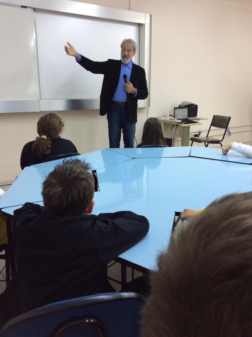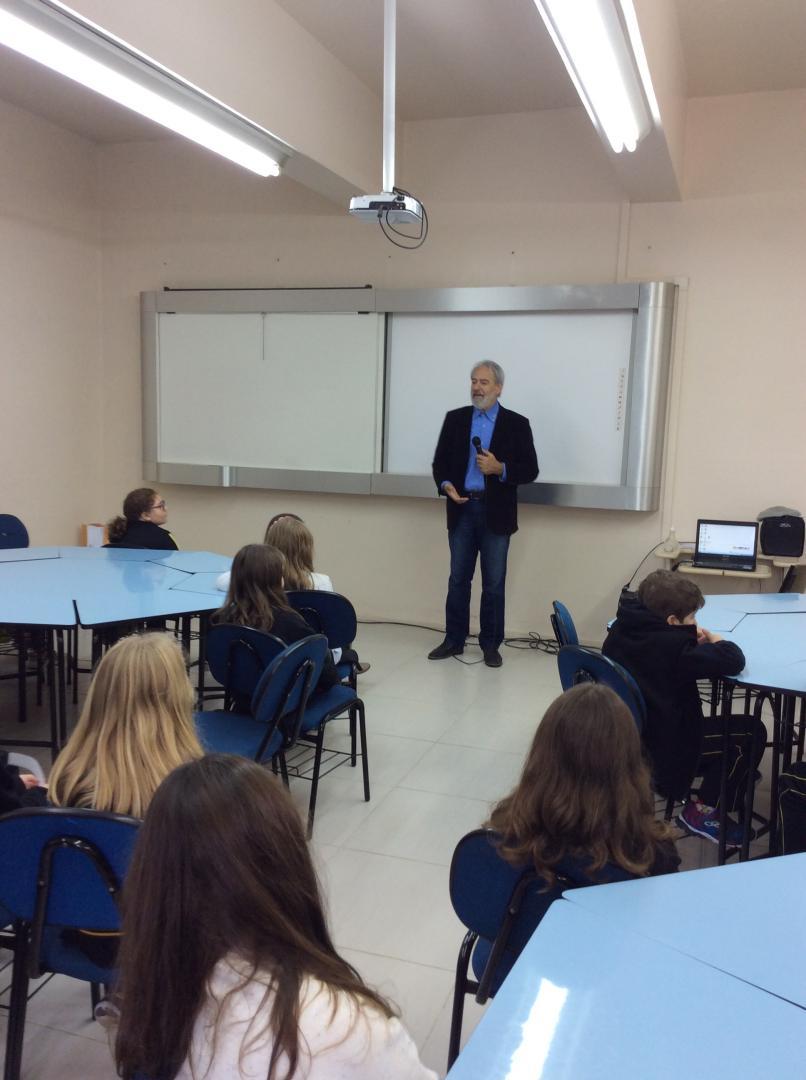 Para enriquecer os estudos dos 3ºs anos do Ensino Fundamental da IENH – Unidade Oswaldo Cruz sobre a história de Novo Hamburgo, no dia 12 de julho, o compositor do Hino da cidade – Délcio Tavares visitou a Unidade e conversou com os alunos.