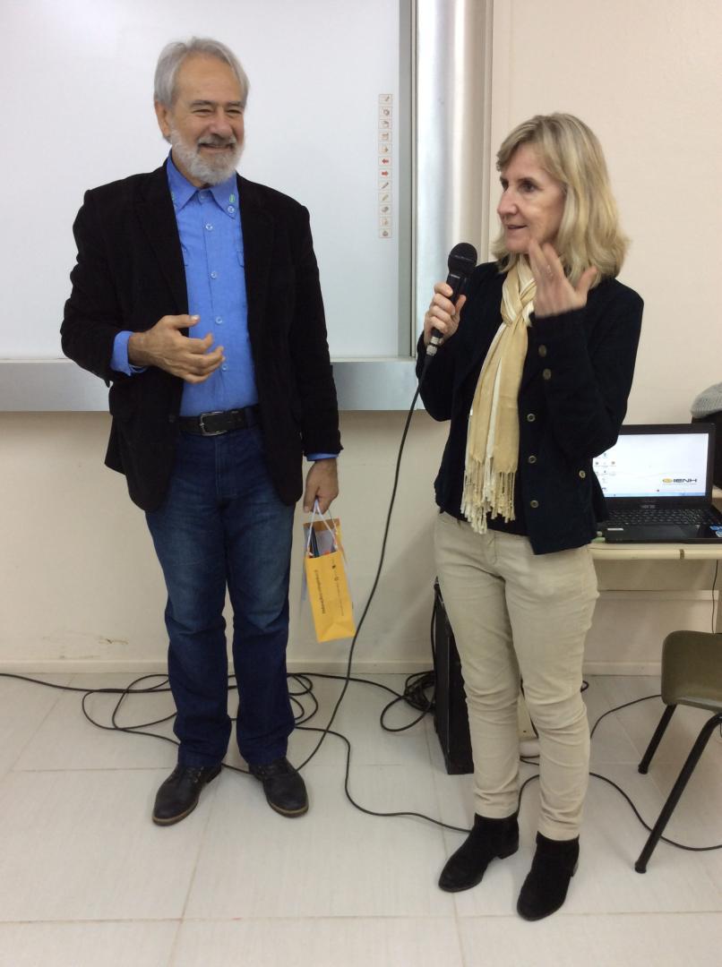 Ao final, em conjunto com Délcio, os alunos cantaram o hino de Novo Hamburgo. Além de Flávia, acompanharam a atividade as Professoras Jaqueline Grassmann e Mari Lúcia Klug Fagundes e a Auxiliar de Atividades Escolares Tatiane Rocha.