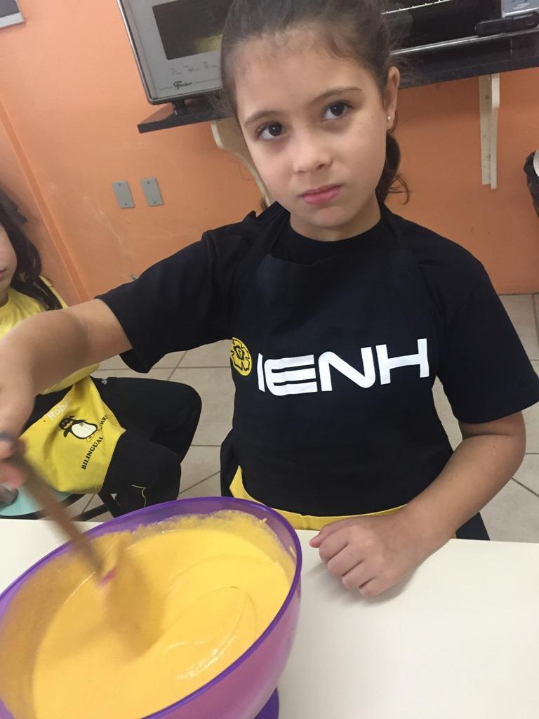 Em clima de Páscoa, no dia 12 de abril, os alunos dos 1ºs anos C e D do Ensino Fundamental Bilíngue da IENH – Unidade Oswaldo Cruz prepararam um bolo de cenoura na aula de Língua Inglesa.