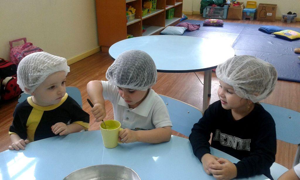Durante o segundo semestre, as turmas conheceram as cores de forma lúdica através de músicas, brincadeiras e histórias. A ideia de produzir o Rainbow Cake foi proporcionar um momento de reconhecimento das cores vistas nas histórias trabalhadas ao longo do semestre. Os alunos diziam as cores em Inglês enquanto a Professora Kelly coloria a massa do bolo. "Era uma surpresa ver a cor aparecer enquanto eles mexiam. Após assado o bolo, os alunos saborearam o mesmo, e ficaram bem contentes em ver no bolo as cores que tinham visto na história", comenta a Professora.