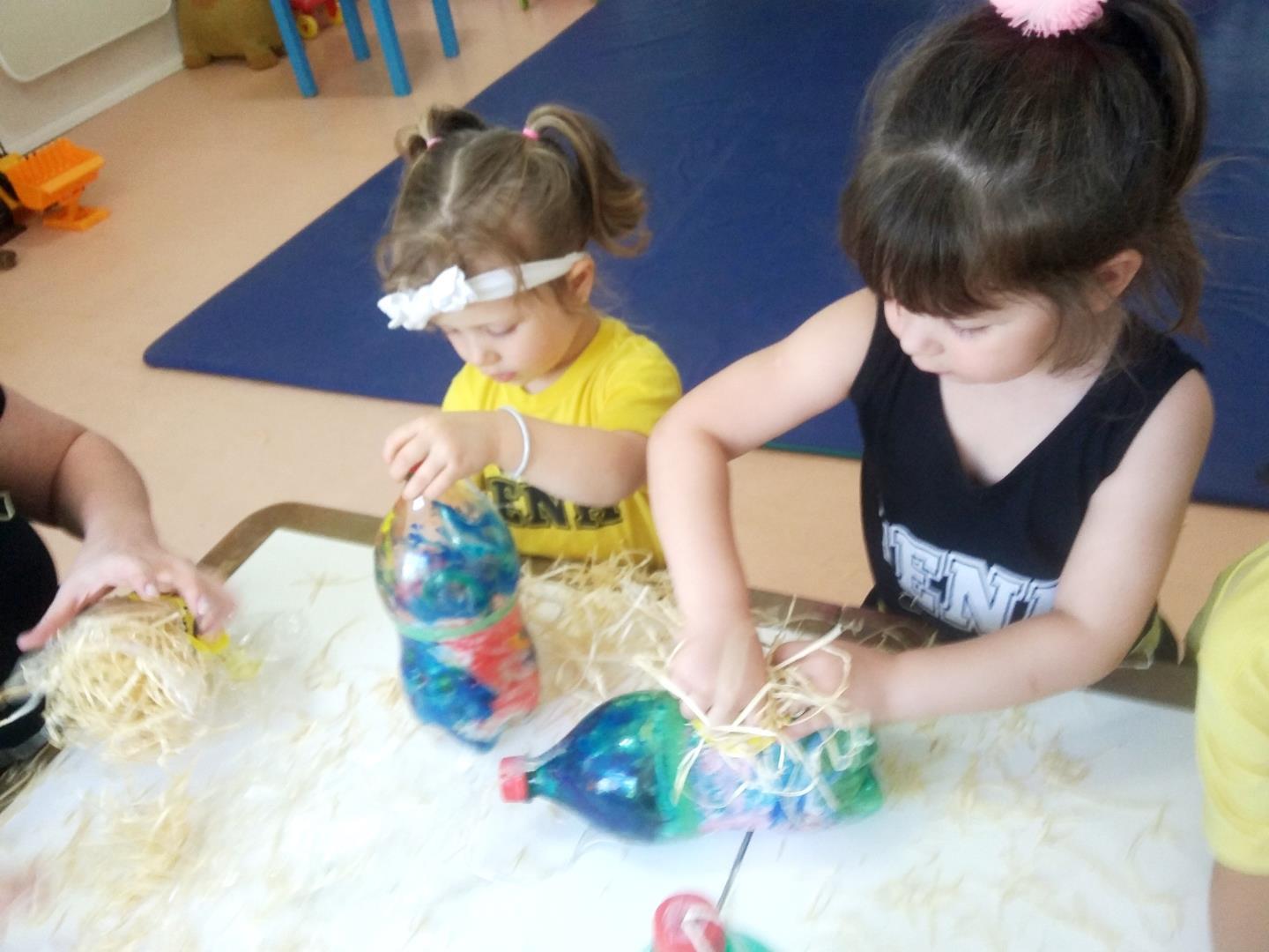 Os alunos já sabem que os pássaros colocam ovos e que depois nascem os filhotes. A professora Lúcia Cardoso contou-lhes também a história “A árvore de Tico”. A partir disso, no dia 29 de novembro, o grupo resolveu fazer uma casinha para os passarinhos utilizando garrafa PET, cola colorida e palha. “Todos estavam muito felizes com a confecção da casinha e alguns já estavam decidindo onde colocar a casinha: na casa da vó, na área da sua casa ou em alguma árvore”, comenta a Professora. Através da atividade, a turma aprendeu sobre sustentabilidade e a importância das árvores.