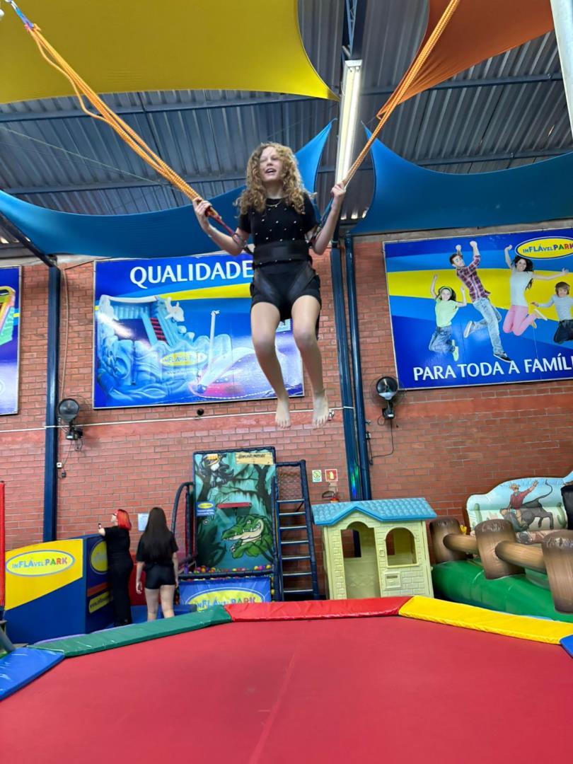 Com muita diversão e alegria, o Arte em Movimento realizou seu último encontro do ano no dia 17 de dezembro. As meninas, acompanhadas pelos professores do projeto e pela coordenadora do Programa Socioambiental da IENH, Isabel Lizakoski, participaram de uma tarde especial de brincadeiras no salão de festas do Inflável Park, em um momento marcado por integração, risadas e empolgação.