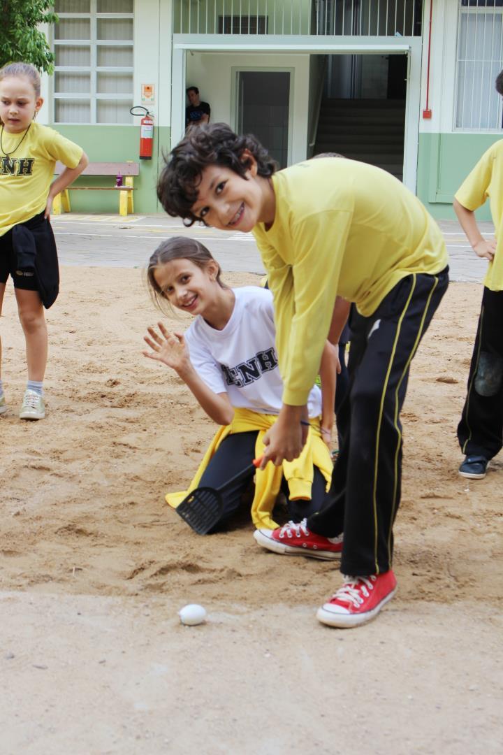 Na tarde do dia 18 de abril, os alunos bilíngues dos 3ºs anos do Ensino Fundamental da IENH – Unidade Oswaldo Cruz vivenciaram uma brincadeira típica de Páscoa em países como os Estados Unidos e Inglaterra. A atividade Easter Egg Roll consiste em realizar um determinado percurso empurrando um ovo com uma colher.