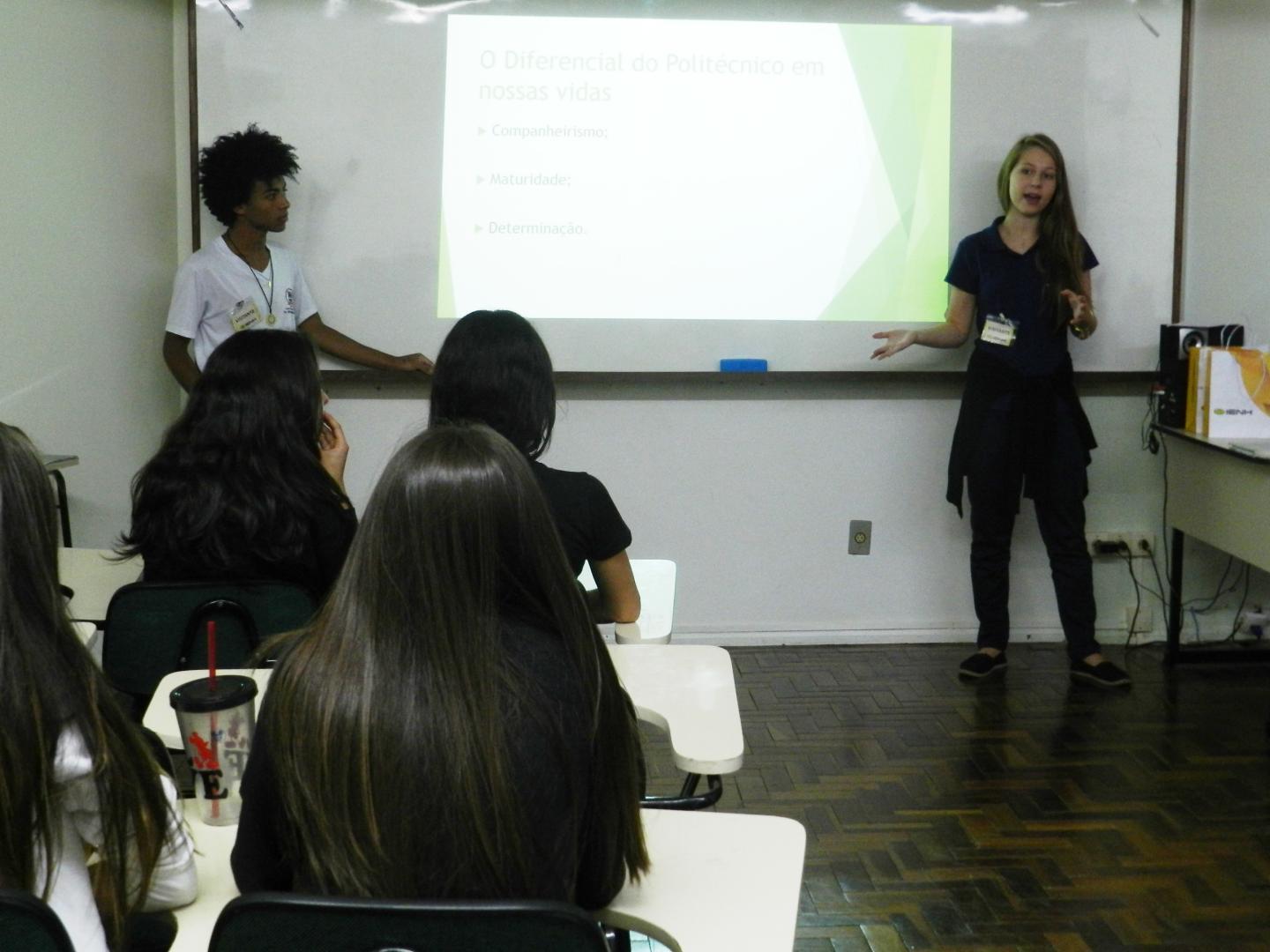 Gabriela Ritter e Gustavo Shilton Buenos da Silva, estudantes do 3º ano do Ensino Médio, relataram suas experiências na realização de projetos, como também as vivências nas participações em feiras nacionais e internacionais. Com três anos de atuação na pesquisa, os dois falaram dos desafios da vida de um pesquisador.