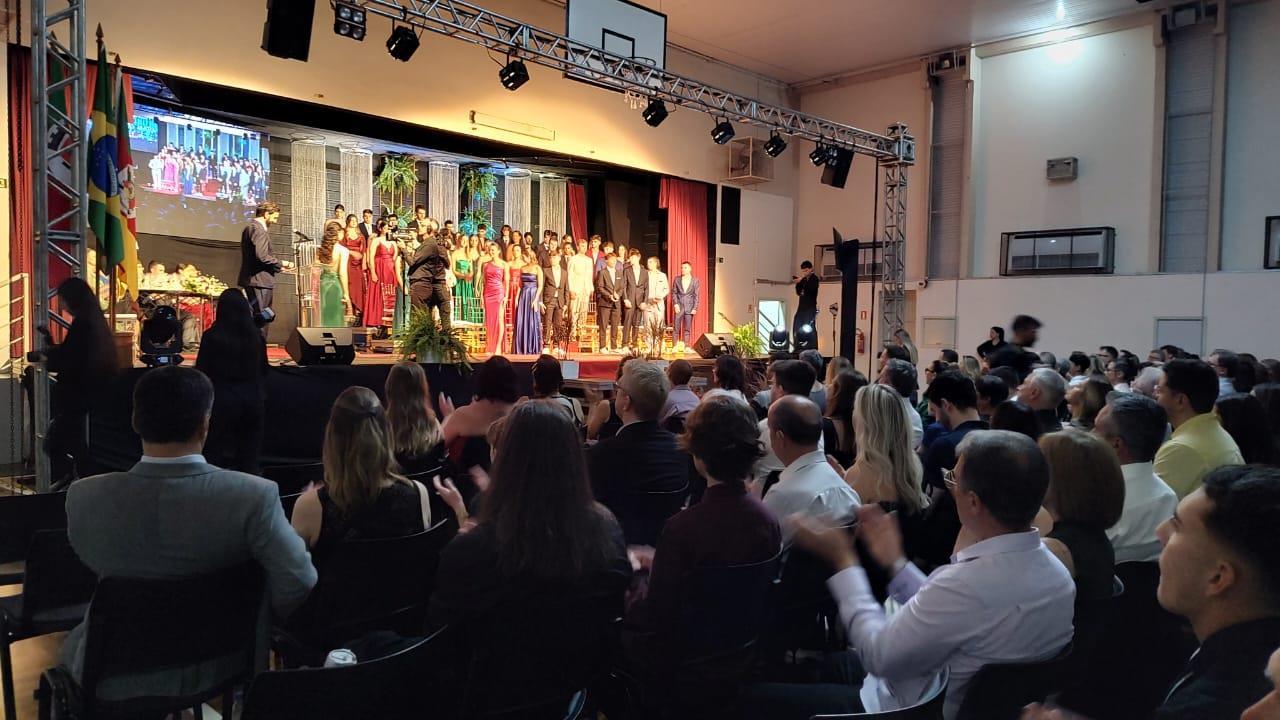 Os discursos dos oradores, Gabriela Kunst Abatte e Eduardo Weyh Torres, emocionaram o público ao relembrar momentos marcantes da trajetória escolar e projetar os sonhos para o futuro.
