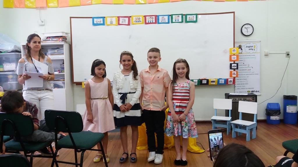 Ao final, cada aluno recebeu uma coroa que continha uma poção mágica para solucionar os problemas ambientais dos reinos: balinhas de goma! Estas foram encontradas após uma caça ao tesouro em Inglês.