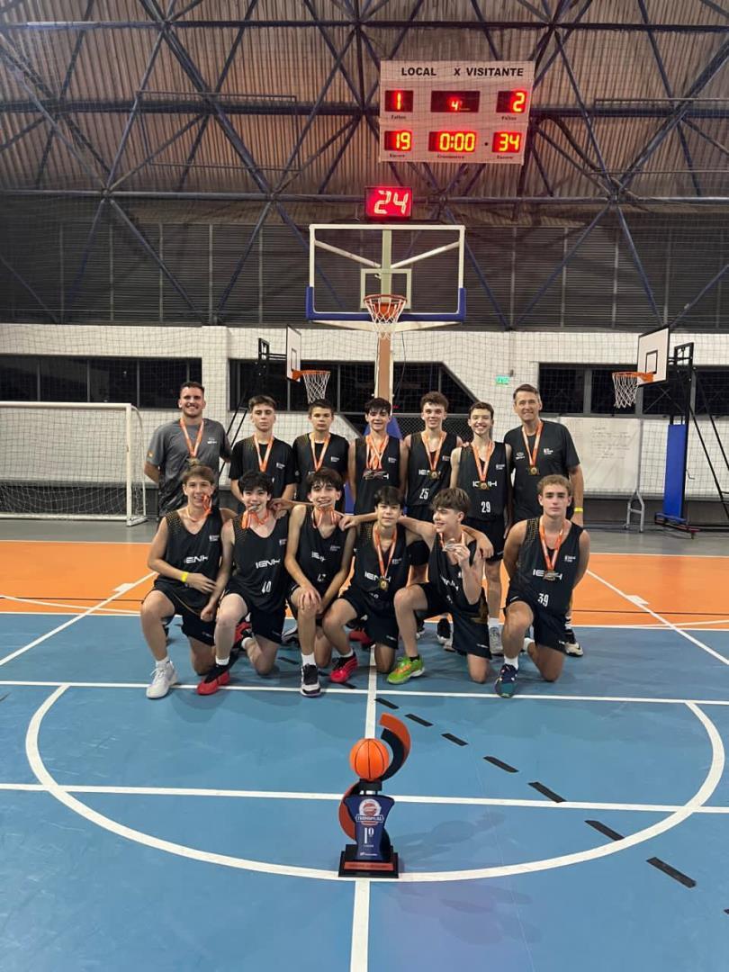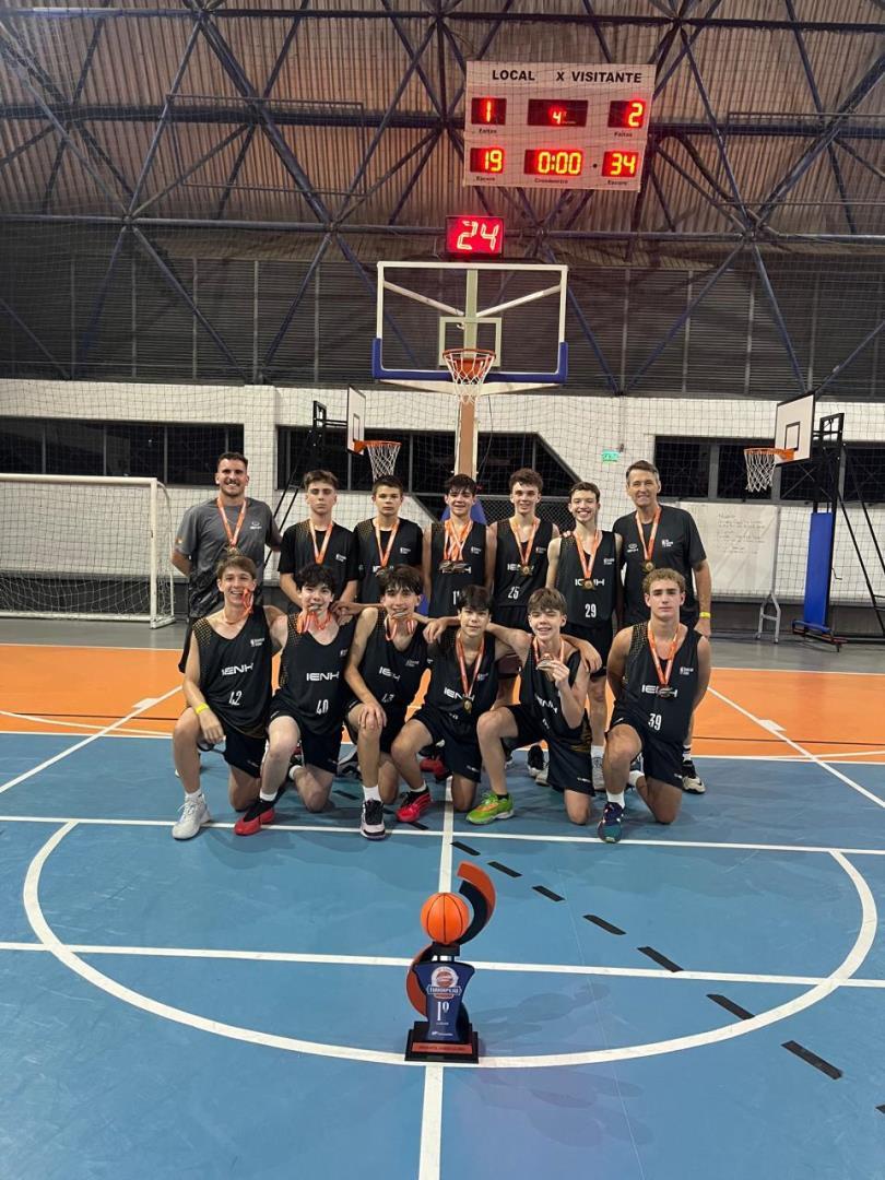 A equipe Sub15 de basquete da IENH conquistou o título de campeã da categoria Infantil Masculino da Copa Farroupilha 2025 e revelou como destaque da final o atleta Artur Garcia, que também foi eleito melhor jogador da categoria e cestinha da competição, com 77 pontos convertidos.