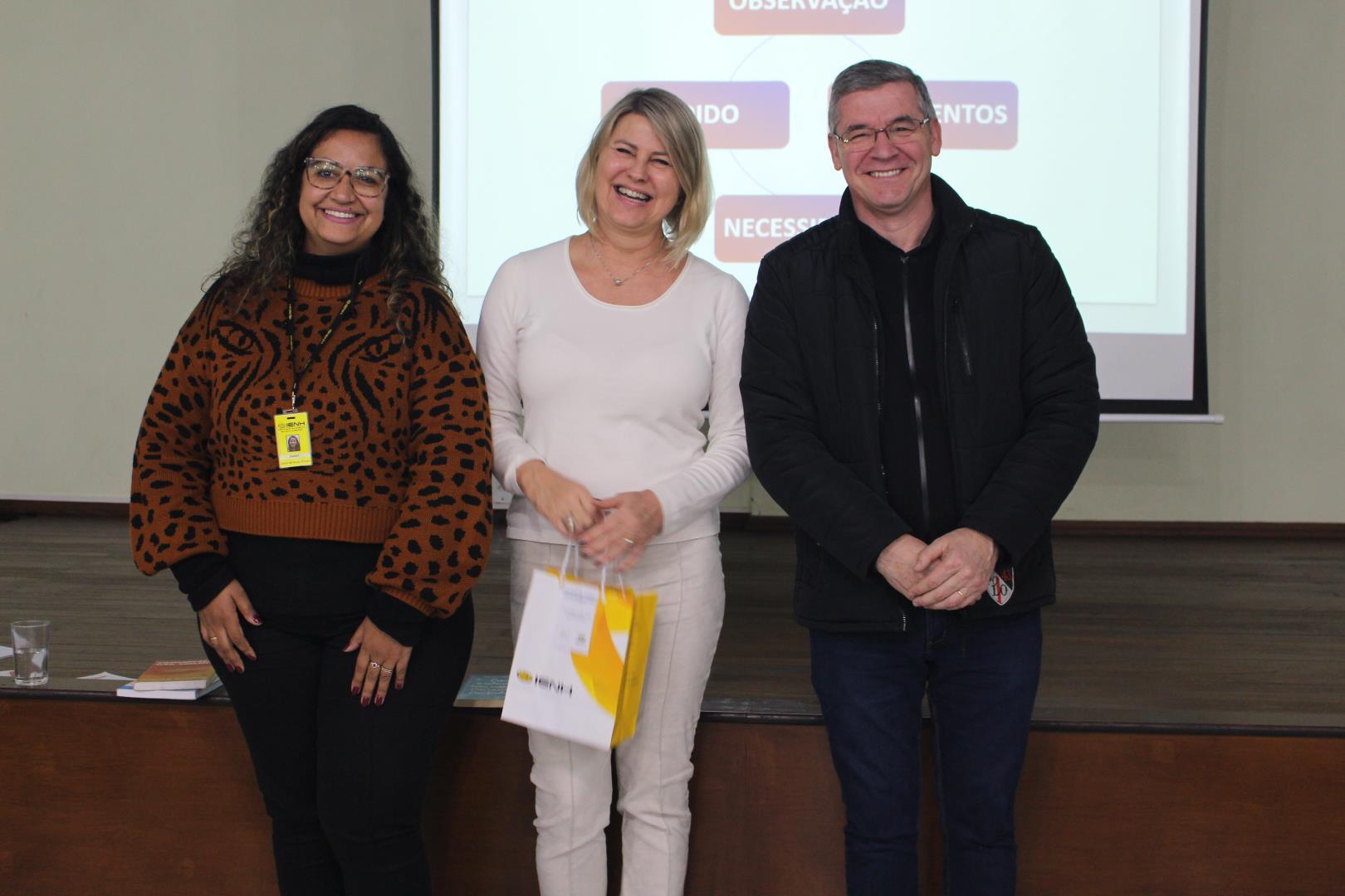 Após, a Professora do Curso de Psicologia da Faculdade IENH, Analice Brusius, falou aos presentes sobre “Comunicação Não Violenta no Ambiente Escolar”. Após o lanche, houveram orientações do setor de Gestão com Pessoas e uma palestra sobre Primeiros Socorros.