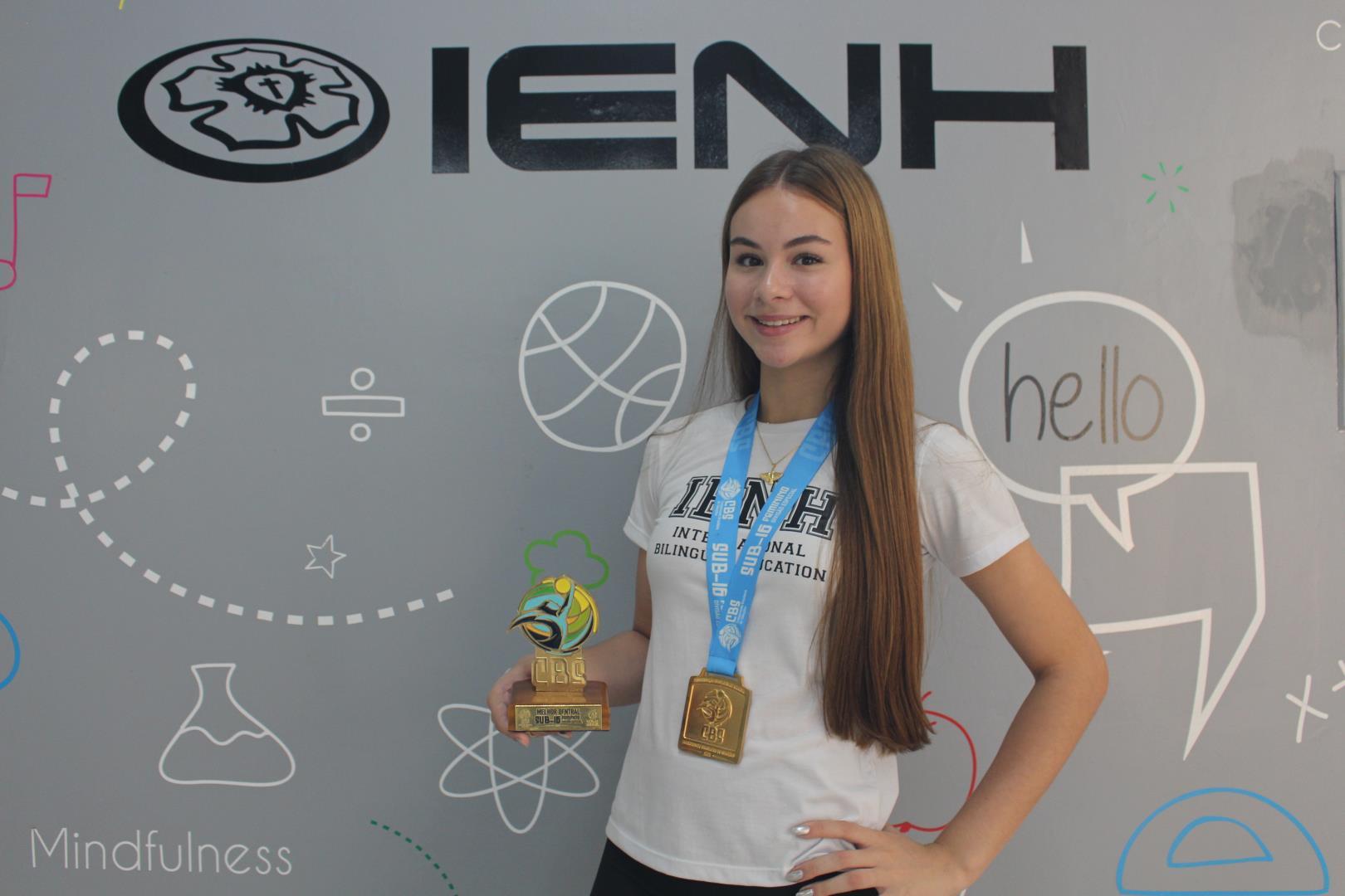 Além de ser atleta da IENH, Manuella estuda no Year 9 do Ensino Fundamental do Currículo Internacional Bilíngue.