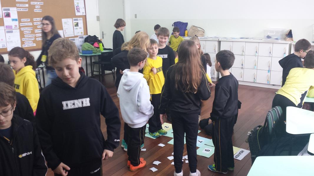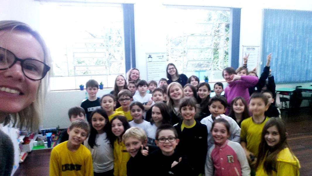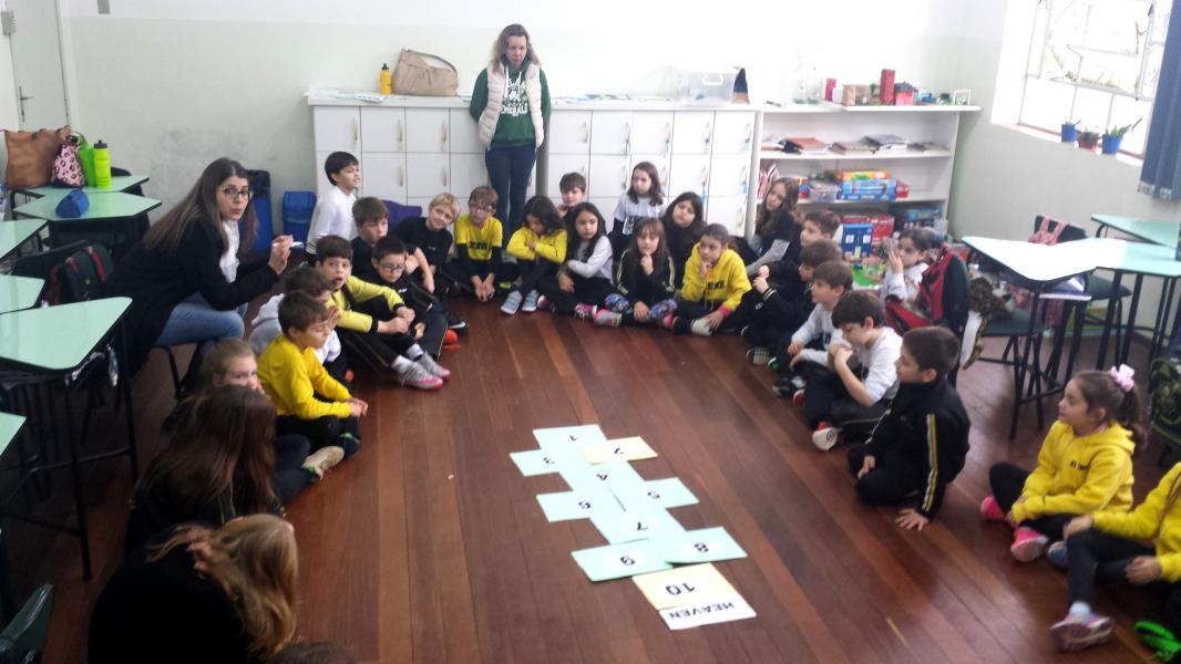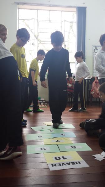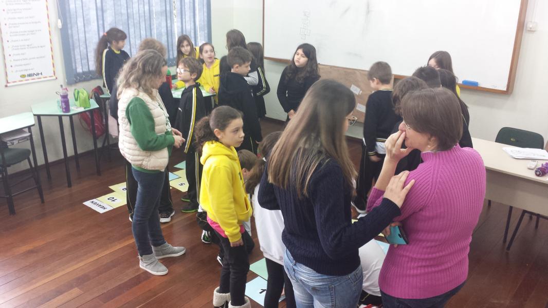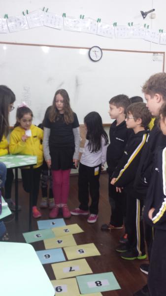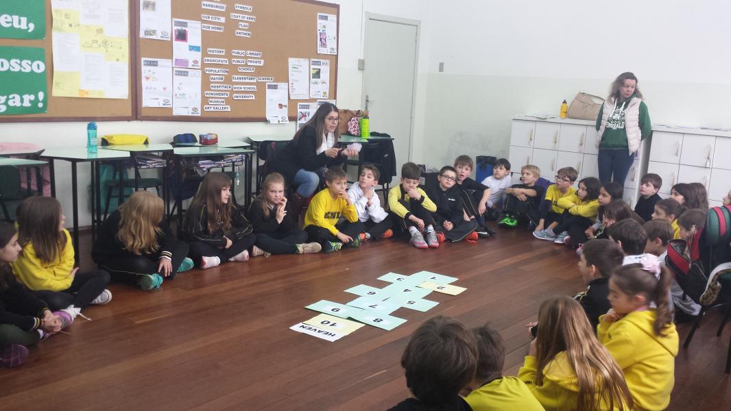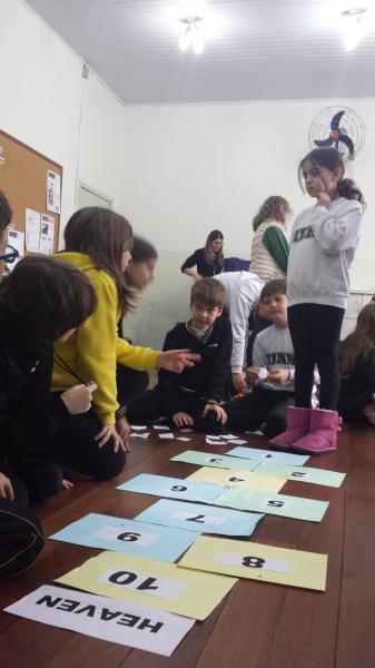 Para revisar os conteúdos de Programação estudados no primeiro semestre, a turma realizou a atividade desplugada Crazy Hopscotch (Amarelinha Maluca). Além disso, os alunos tiveram a oportunidade de conhecer a Professora Maidi Dalri, que conversou com o grupo sobre a importância das aulas de Programação e o domínio da Língua Inglesa para programar.