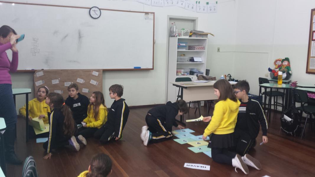 Na manhã de ontem, 12 de julho, as Professoras de Língua Inglesa – Maria de Fátima Gonçalves e Janaína Menezes proporcionaram um momento de troca de conhecimento entre os alunos do 3º e 4º ano A do Ensino Fundamental Bilíngue da IENH – Unidade Pindorama.