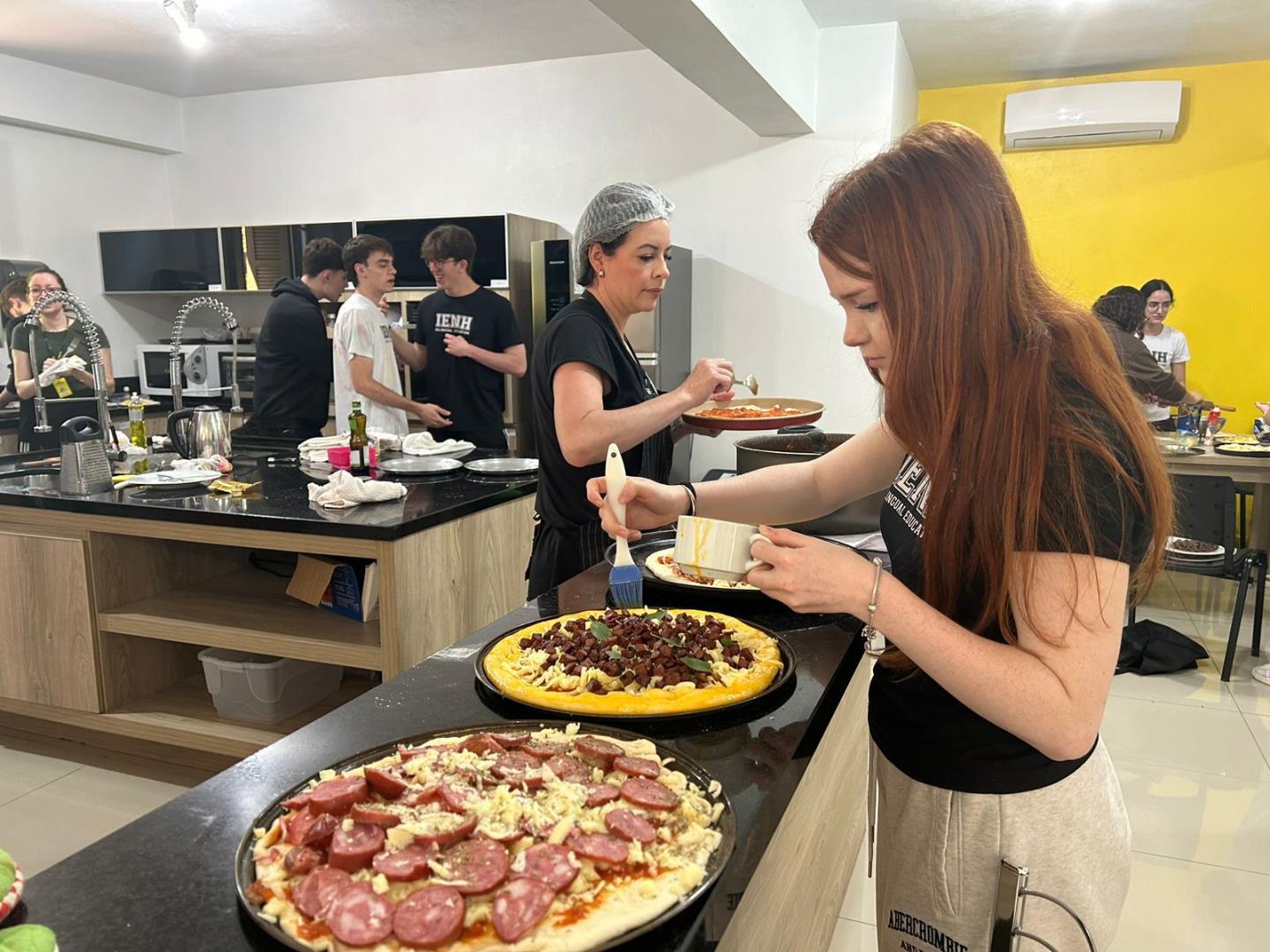 As turmas da 3rd grade do Ensino Médio da IENH – Unidade Fundação Evangélica tiveram um dia diferente e cheio de aprendizados. Conduzidos pela professora Joseana da Silva, os estudantes participaram, no dia 11 de novembro, de uma aula especial no Espaço Maker, onde puderam colocar em prática habilidades importantes para o futuro enquanto produziam pizzas de diversos sabores.