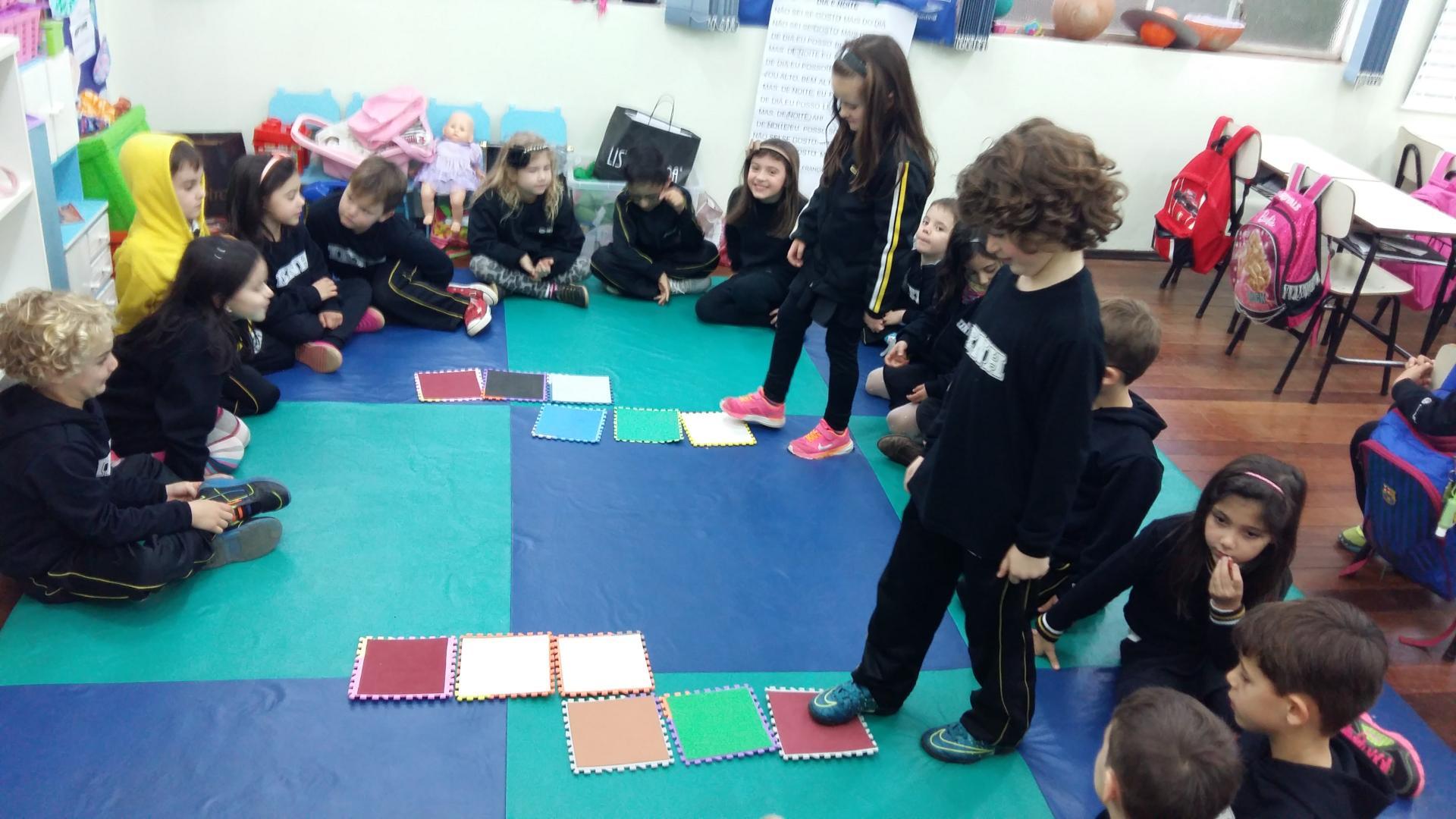 As Professoras Fabiane Heck, Scheila Lauck e Renate Griggio desenvolveram com os alunos uma sequência de comandos que devem seguir para chegarem a um resultado. Através de brincadeiras orais que envolvem lateralidade, as Professoras sugeriram os comandos. Os alunos se organizavam e direcionaram o corpo, utilizando os comandos frente, trás, direita e esquerda. “Também realizamos atividades em grupo com registro em folha em que primeiro todo o grupo sentado em roda observa a sequência e a repete. Em seguida, trabalharam registrando as sequências em folha e esclarecendo as dúvidas com as Professoras e colegas”, conta Fabiane.