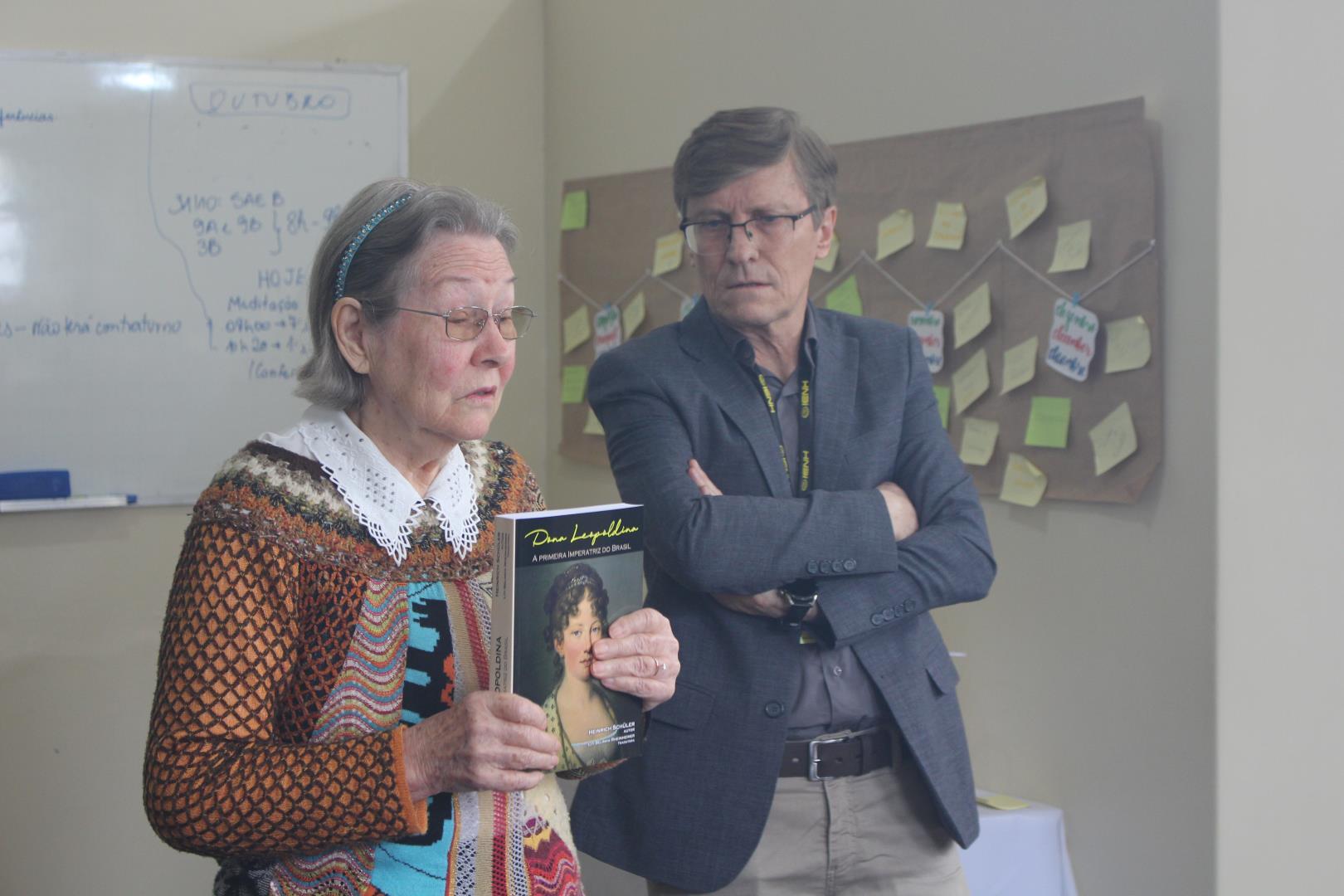 Entre as obras, um destaque especial: Dona Leopoldina – A Primeira Imperatriz do Brasil, de Henrich Schüler, livro traduzido pela própria Liti Belinha. A publicação retrata a trajetória de Dona Leopoldina de Habsburgo, figura fundamental na história do Brasil, abordando aspectos de sua vida pessoal, política e cultural, com uma linguagem acessível e fiel aos registros históricos.