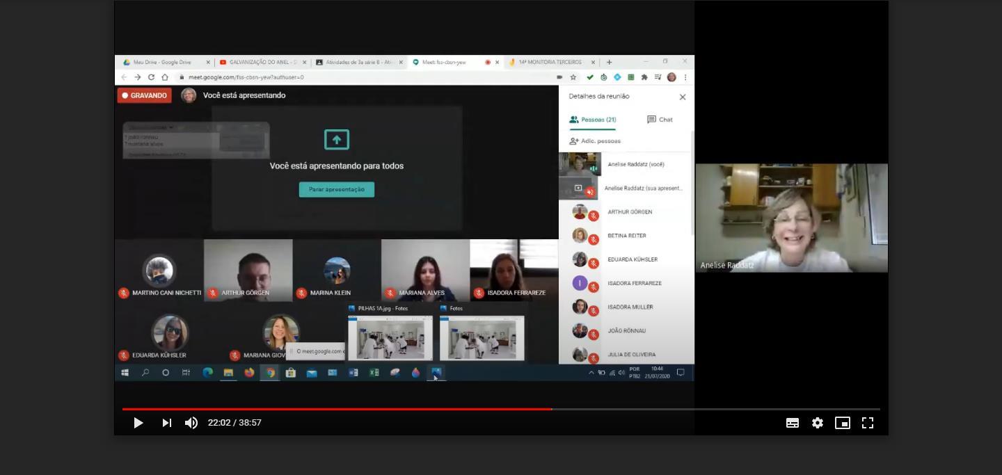 Mesmos distantes do Laboratório de Química, eles puderam vivenciar experiências na aula on-line. Ao abordar o conteúdo de Pilhas, a Professora Anelise Raddatz organizou uma aula com vídeos e fotos de experimentos. Os estudantes conheceram a prática das reações de oxirredução da árvore de prata e do prego no sulfato de cobre II. “Através dos vídeos, os alunos conseguiram relacionar conteúdo e prática, assimilando melhor o conhecimento”, comenta Anelise.