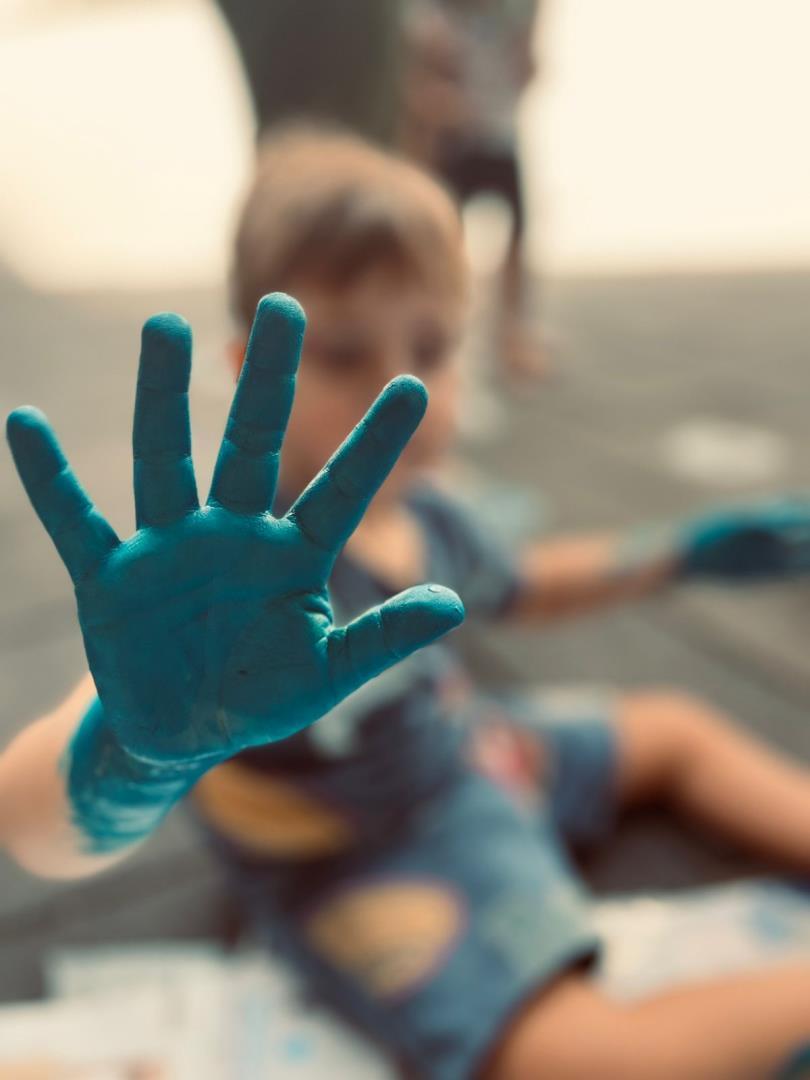 Ao final da vivência, o grupo se reuniu para observar o resultado: um mar azul vibrante, cheio de marcas, formas e texturas criadas pelas próprias crianças. Mais do que o produto final, o destaque foi a valorização do processo, da criatividade e do trabalho coletivo.