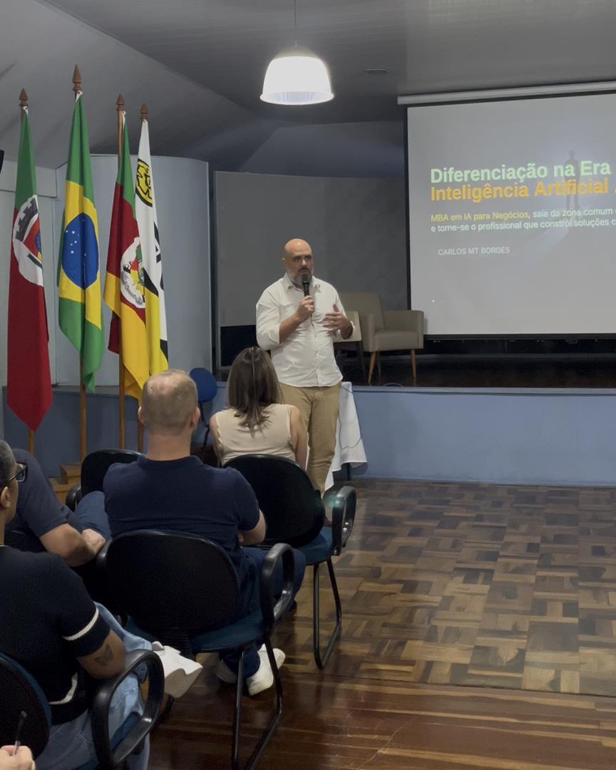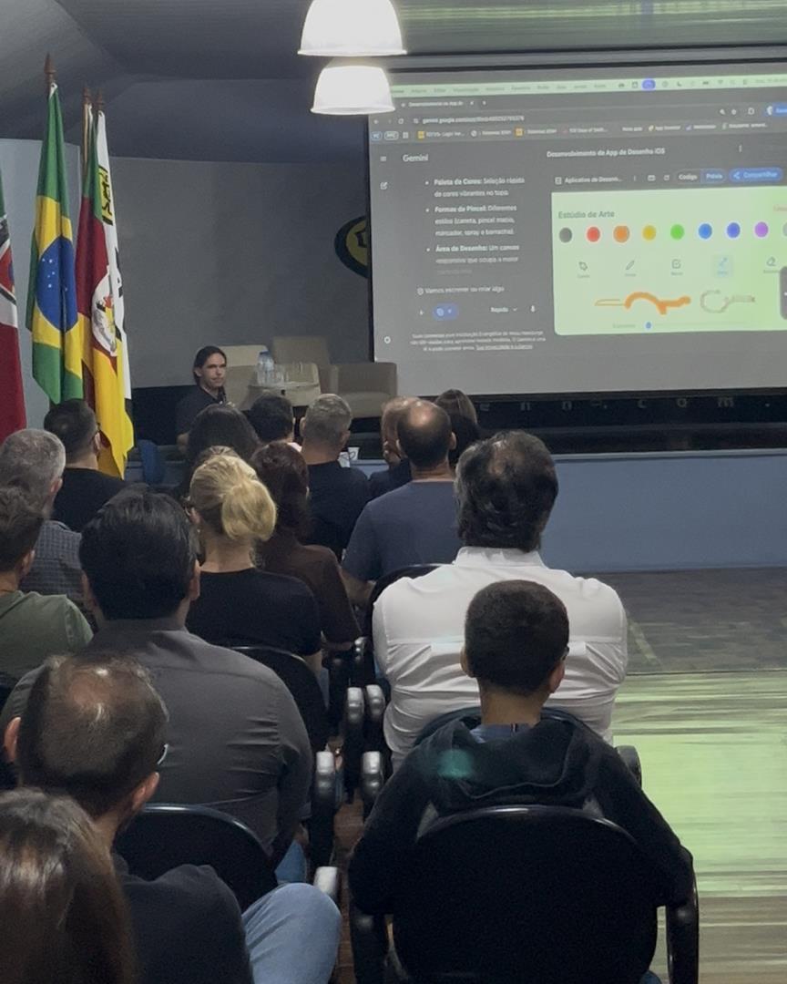 Mão na Massa com Google AI: O professor do MBA em IA para Negócios, Eduardo Isaia Filho, demonstrou aplicações práticas das ferramentas do Google para otimizar processos e gerar valor imediato.