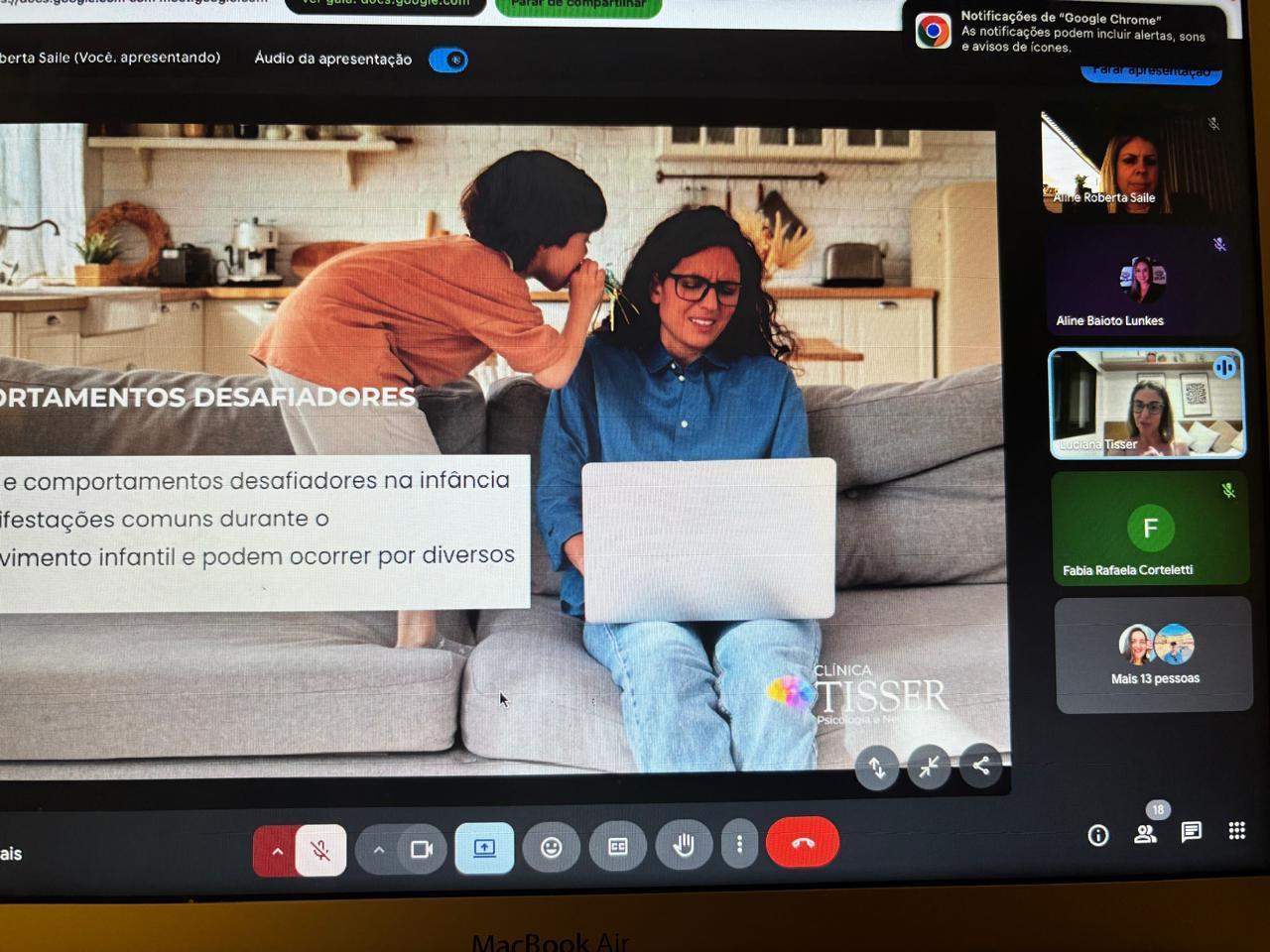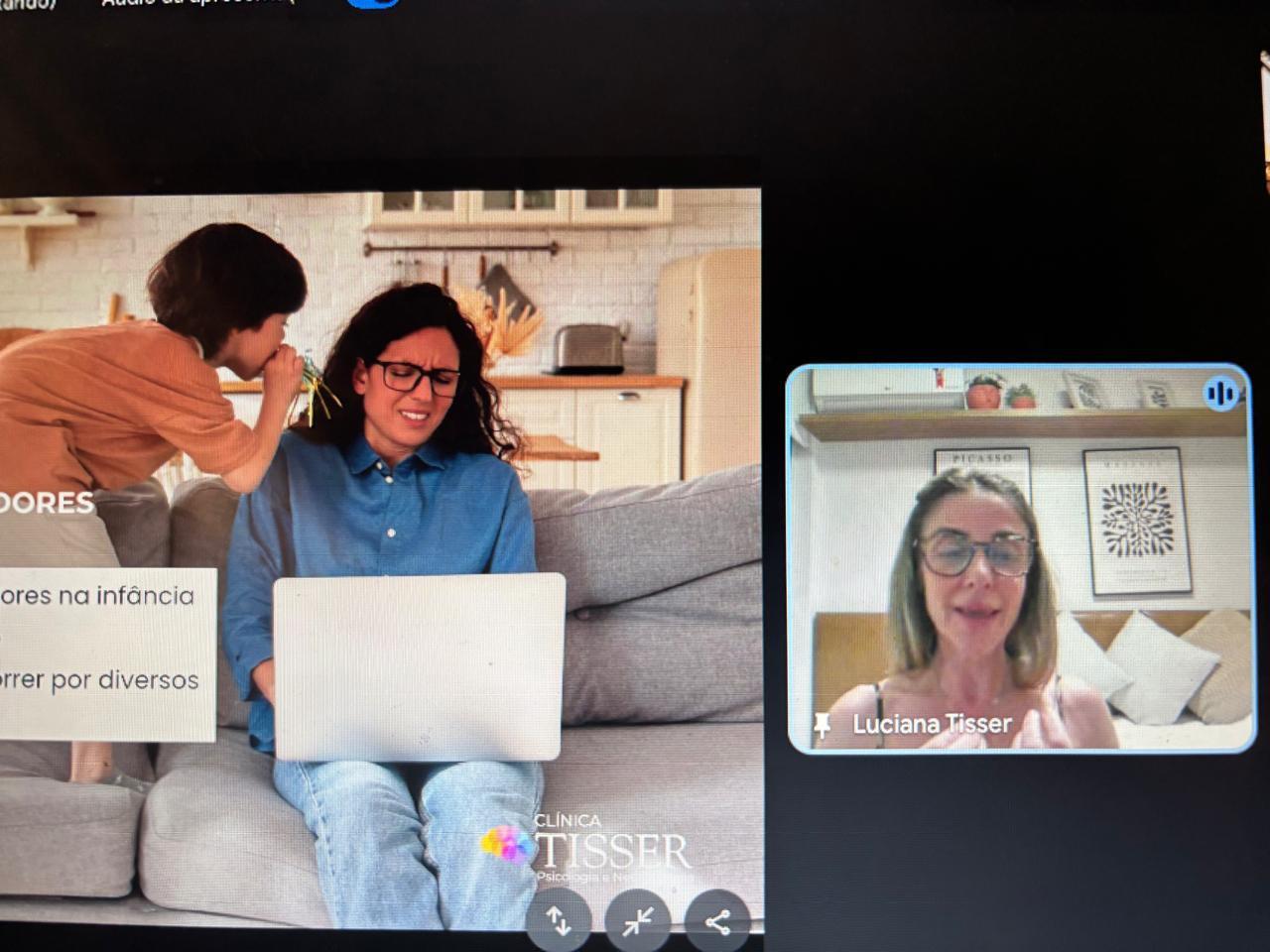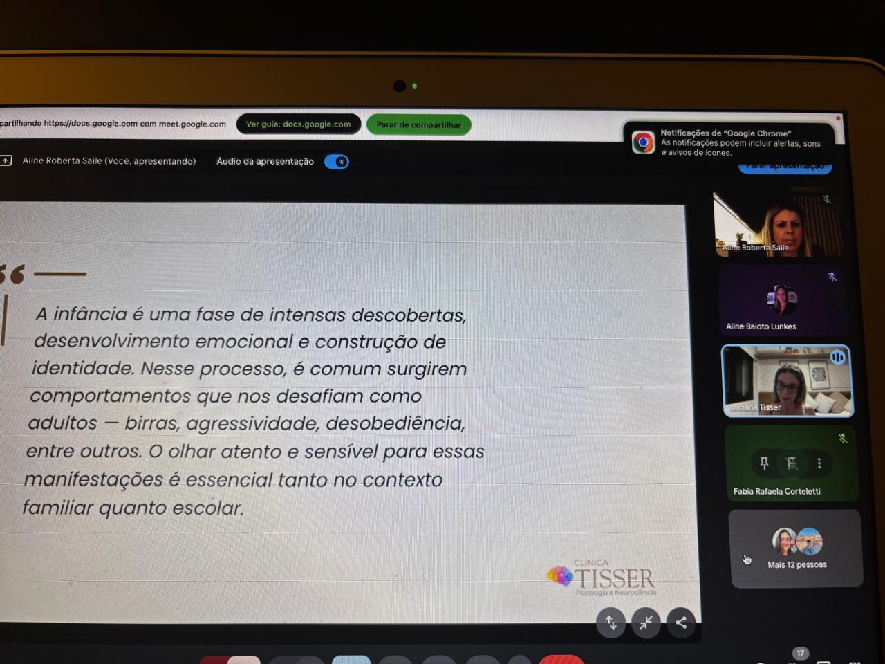 A palestra foi transmitida ao vivo pela plataforma Google Meet, possibilitando a participação das famílias de forma prática e acessível.