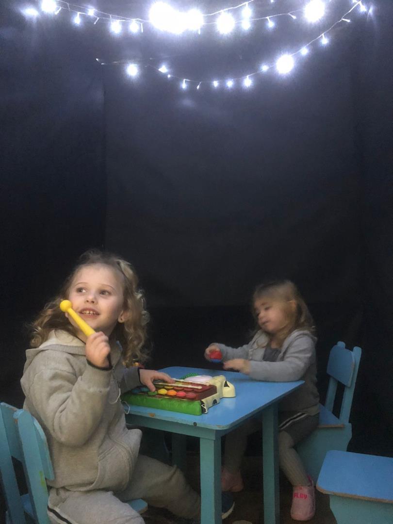 O grupo construiu uma casinha e teve a ideia de colocar porta e luzes no ambiente criado para deixar tudo personalizado e com a personalidade da turma. Na proposta, eles criaram, brincaram e usaram da ludicidade.