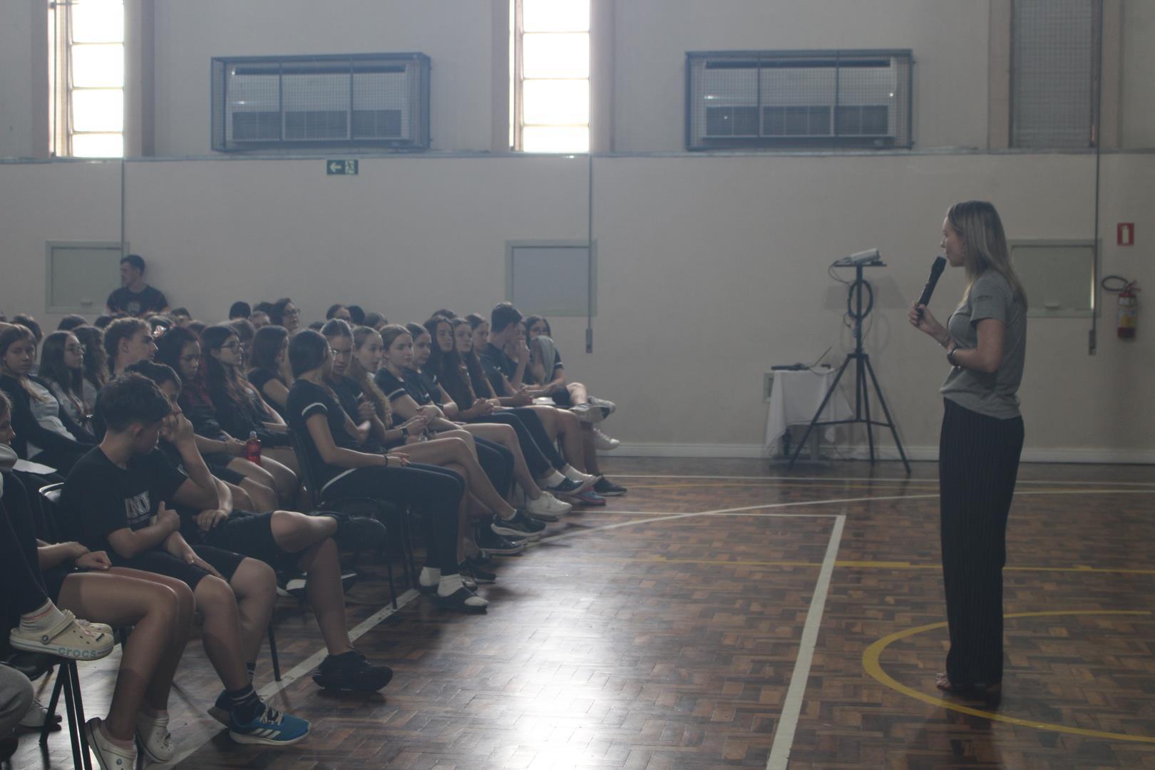 O encontro também marcou a despedida do GECA 2025, que recebeu certificados de participação. A condução do momento foi realizada pelo próprio GECA 2025, ao lado da coordenadora da Unidade, Daniele Blos, celebrando o trabalho desenvolvido ao longo do ano.