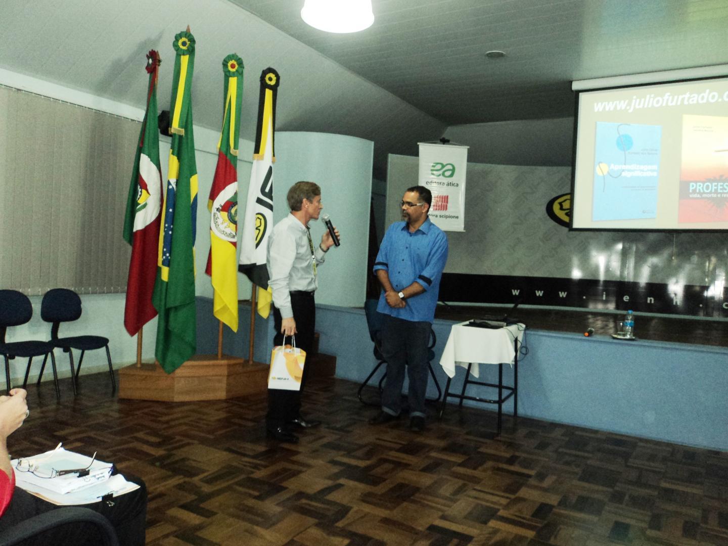 No momento, três tópicos principais foram abordados: gestão da relação interpessoal, gestão da conduta e gestão da aprendizagem. O Professor Júlio Furtado foi quem ministrou a palestra. “A palestra foi 100% e, para "minha alegria", foi aplaudida de pé”, destaca a Supervisora Educacional Marga Inês Schmitt Werckmeister, uma das organizadoras do evento.