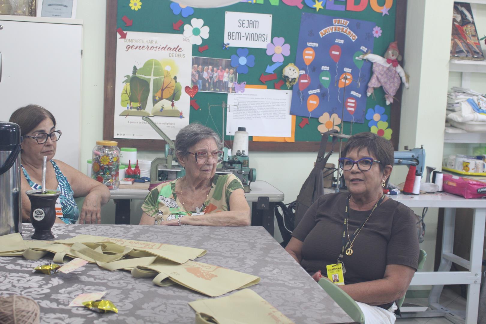 Nas duas tardes, a coordenadora do Programa Socioambiental da IENH, Isabel Lizakoski, iniciou os encontros com a leitura de um trecho do livro “Você não está aqui por acaso”, promovendo um momento de reflexão entre as voluntárias. Em seguida, Isabel agradeceu pela dedicação, parceria e troca ao longo do trabalho voluntário, dando as boas-vindas com a entrega de um mimo da IENH.