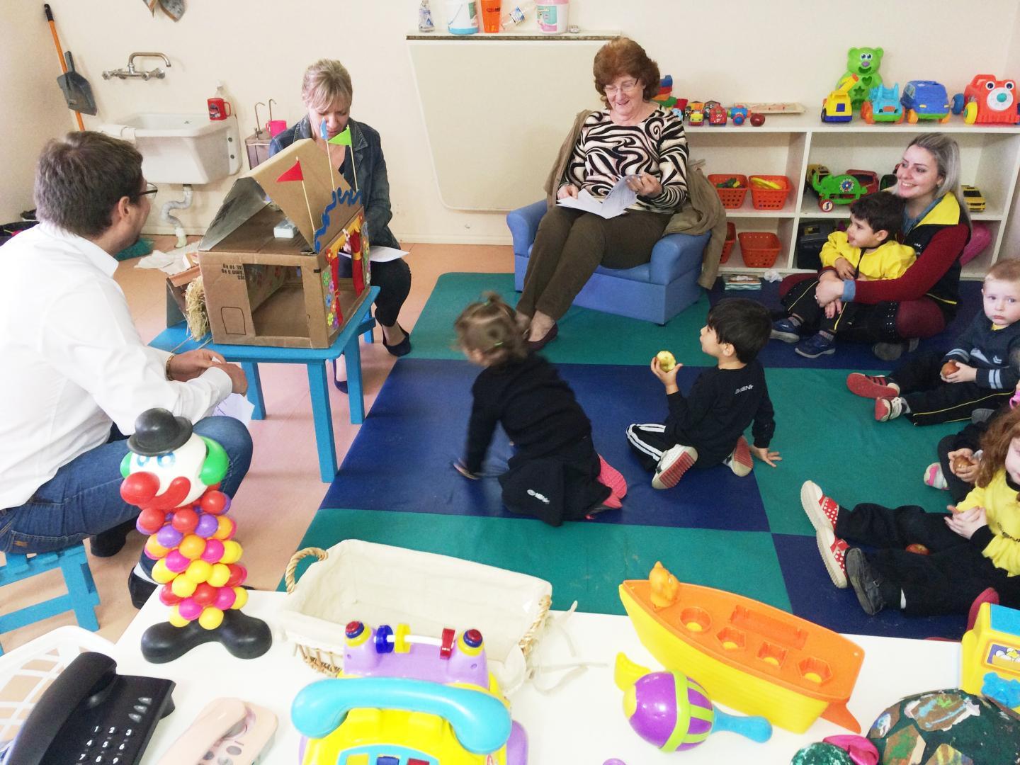 A mãe Anne Bomm, que é arquiteta, construiu uma casinha cenário, que serviu de palco para os personagens da história “Os três porquinhos”. Anne interpretou os porquinhos e o pai Franciel Munaro foi o Lobo mau. “Os alunos amaram a interpretação, até ajudaram o lobo a assoprar as casinhas dos porquinhos. Foi uma experiência muito legal!”, conta a Professora Camila Karloh.