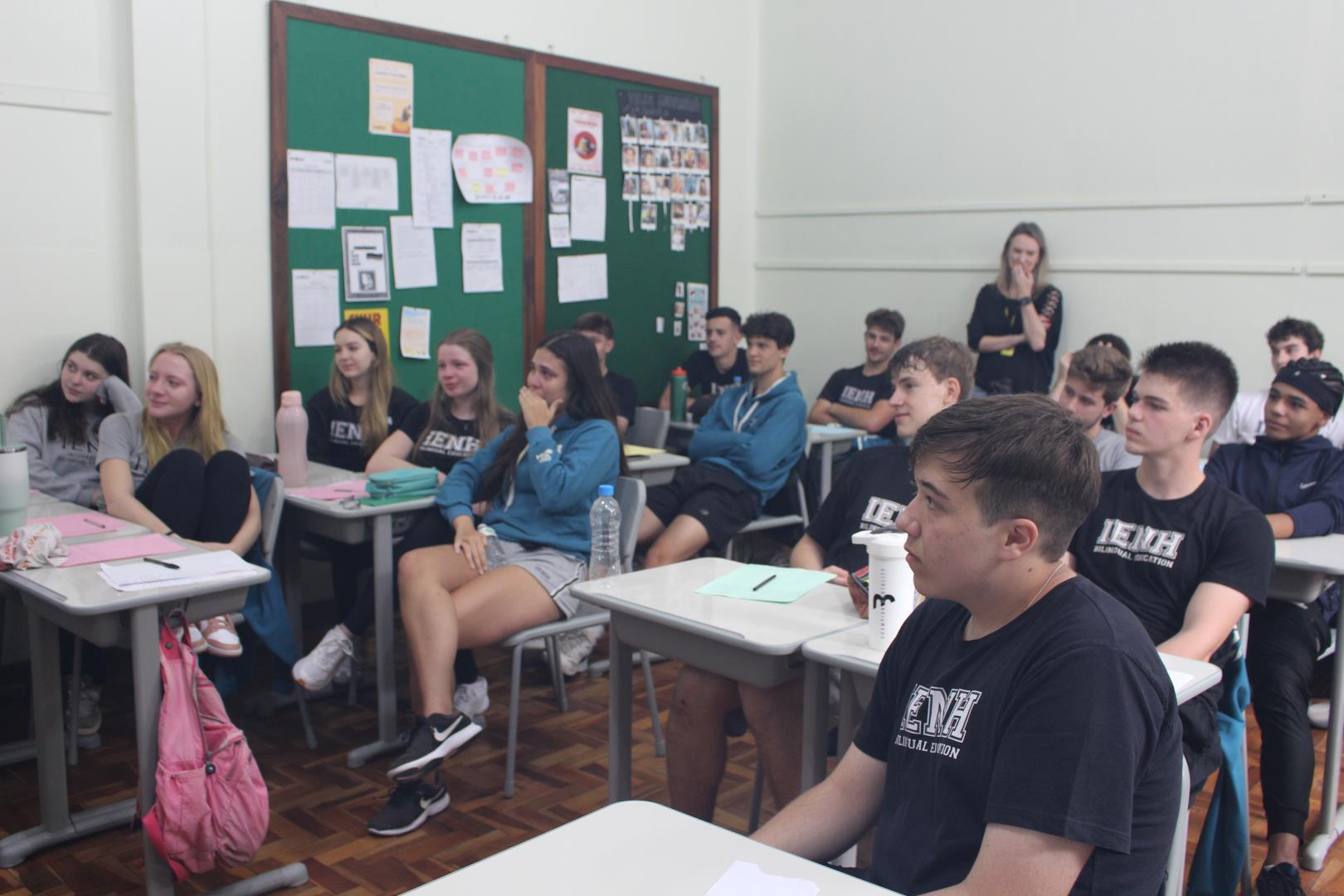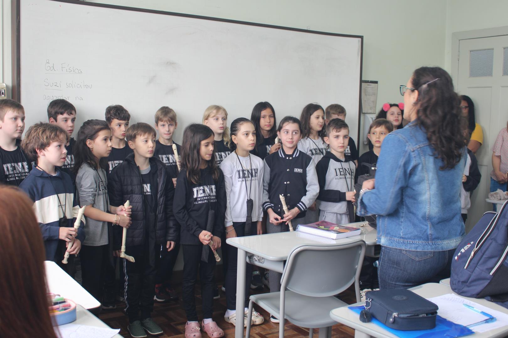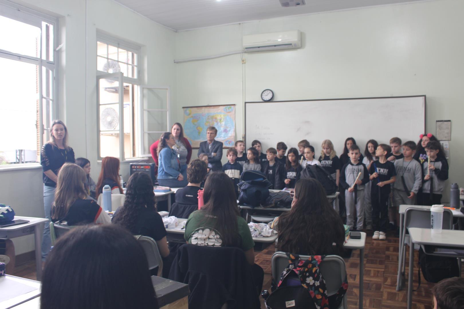 A poucos dias do encerramento das aulas, os estudantes das turmas de 3ª série do Ensino Médio da IENH – Unidade Fundação Evangélica receberam uma surpresa especial. Os estudantes do Year 3 do Ensino Fundamental do Currículo Internacional Bilíngue da IENH – Unidade Pindorama visitaram as salas para uma homenagem repleta de afeto e simbolismo, celebrando o encerramento de um ciclo importante na trajetória escolar dos formandos.