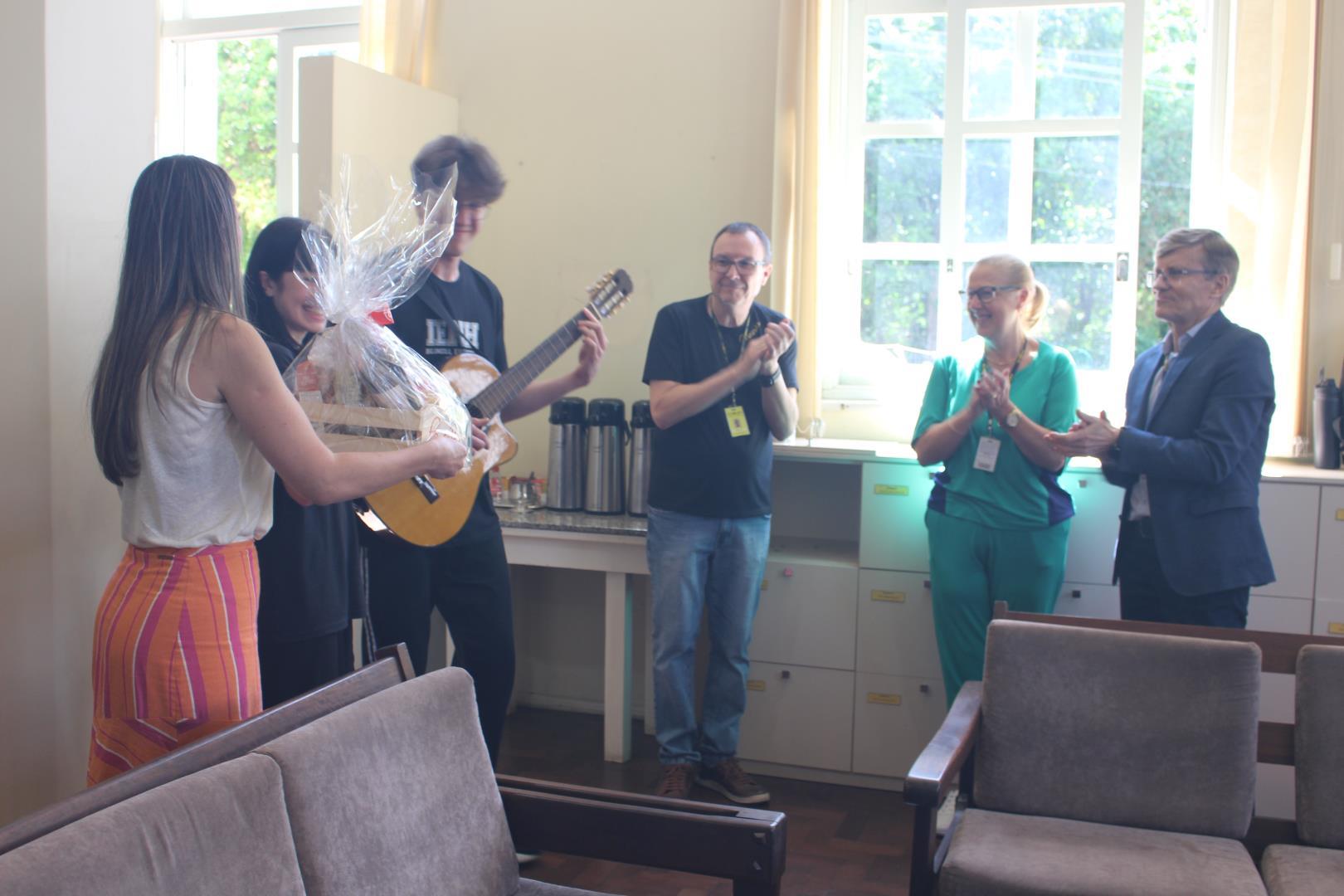A homenagem ocorreu na sala dos professores e contou com palavras de agradecimento por parte dos estudantes, que destacaram o comprometimento e a liderança inspiradora dos gestores. Como forma de carinho, foi entregue uma cesta aos homenageados.