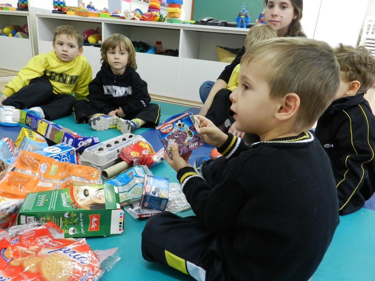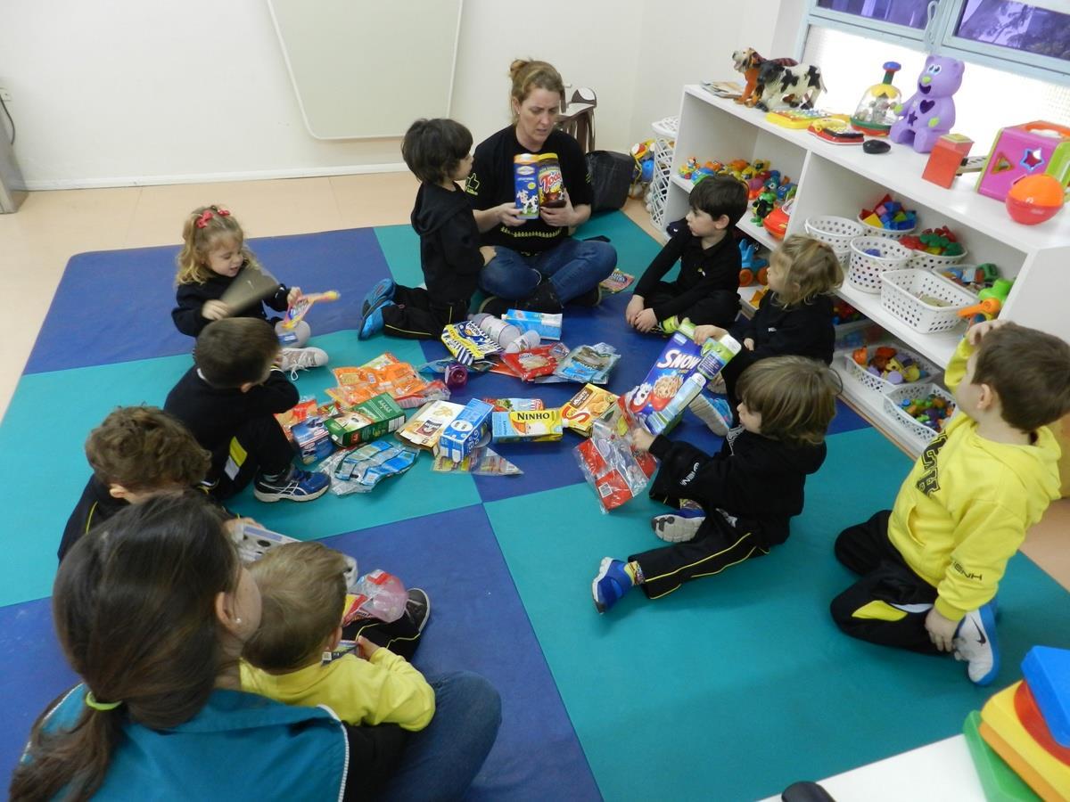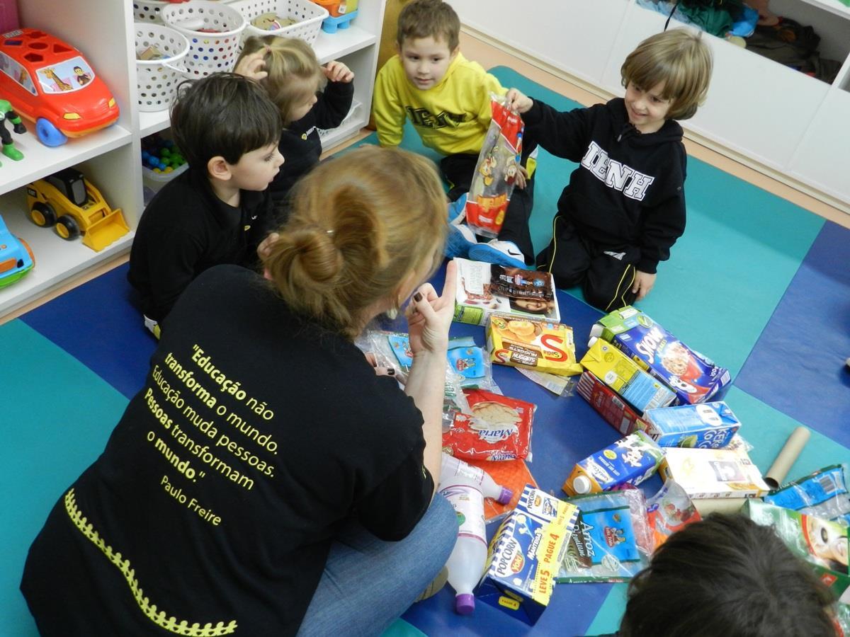 Proposto pela Professora Lúcia Persch Cardoso, o momento da rodinha com a análise de diversas embalagens de alimentos conquistou um resultado positivo. Quando indagados sobre o que se podia ou não ingerir no café da manhã, almoço, lanche e jantar, os pequenos alunos já sabiam responder e separar as embalagens corretamente.