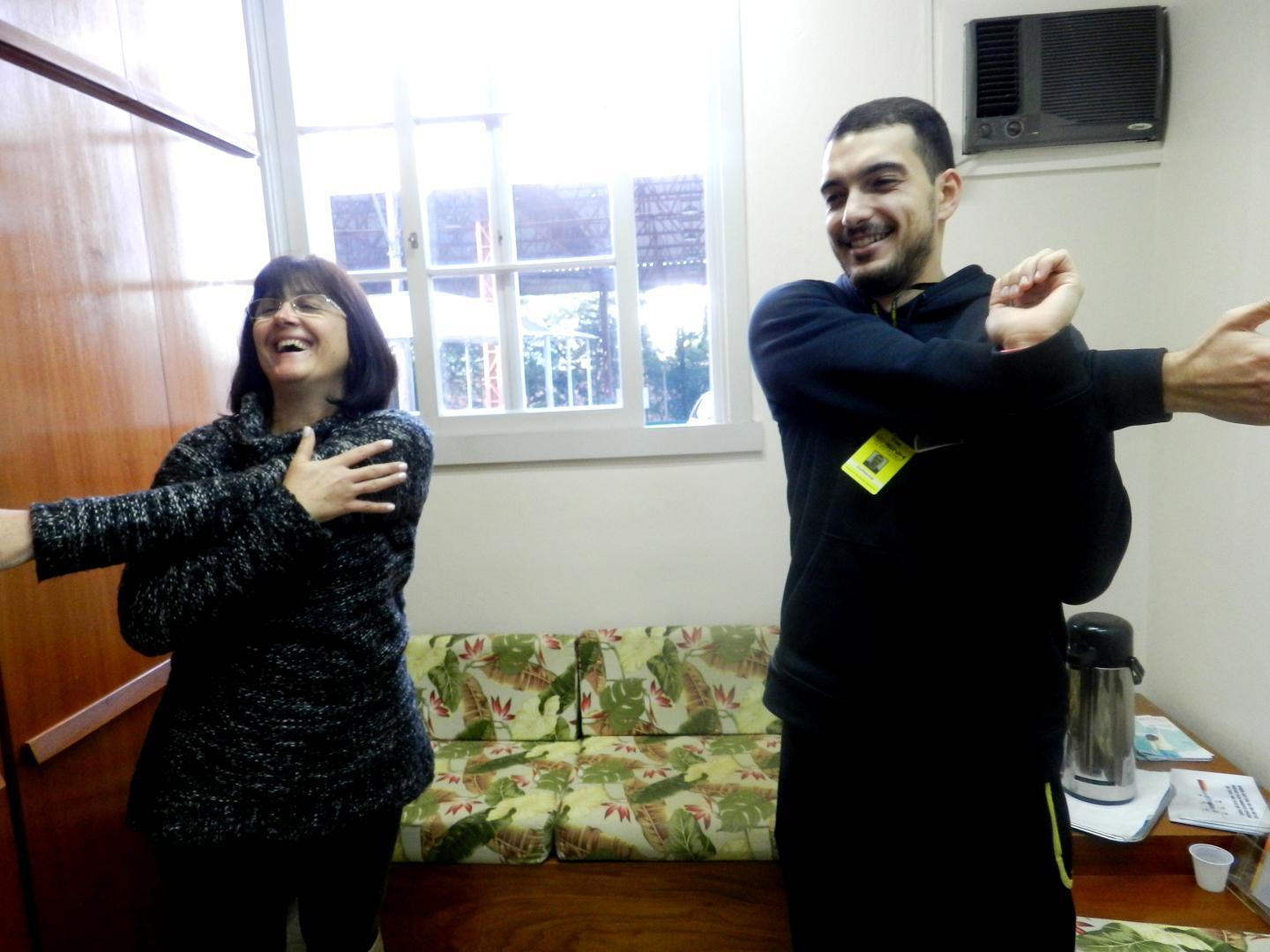 Os funcionários da Fundação também participaram de atividades. O estudante de Educação Física e Auxiliar de Atividades Escolares da Unidade – Guilherme da Silveira Reinhard ministrou momentos de ginástica laboral nos setores administrativos. Cada equipe de funcionários foi orientada pelo Guilherme e realizou alongamentos.