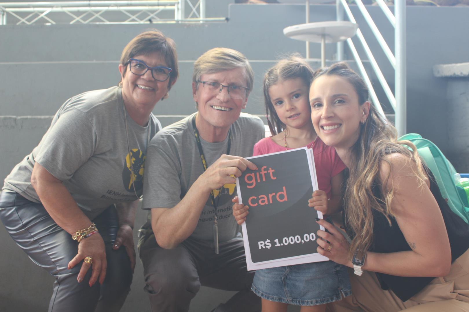O sorteio de brindes marcou o dia por ser um dos momentos mais esperados do evento, com destaque para os prêmios da Campanha de Rematrículas 2026, sorteados entre as famílias que realizaram a rematrícula até 24 de setembro. Também foram sorteados prêmios especiais: uma bicicleta e um Labubu, oferecidos pela Nativu’s, além de 3 vales-compra de R$ 500 cada da Loja de Uniformes Demétrio.